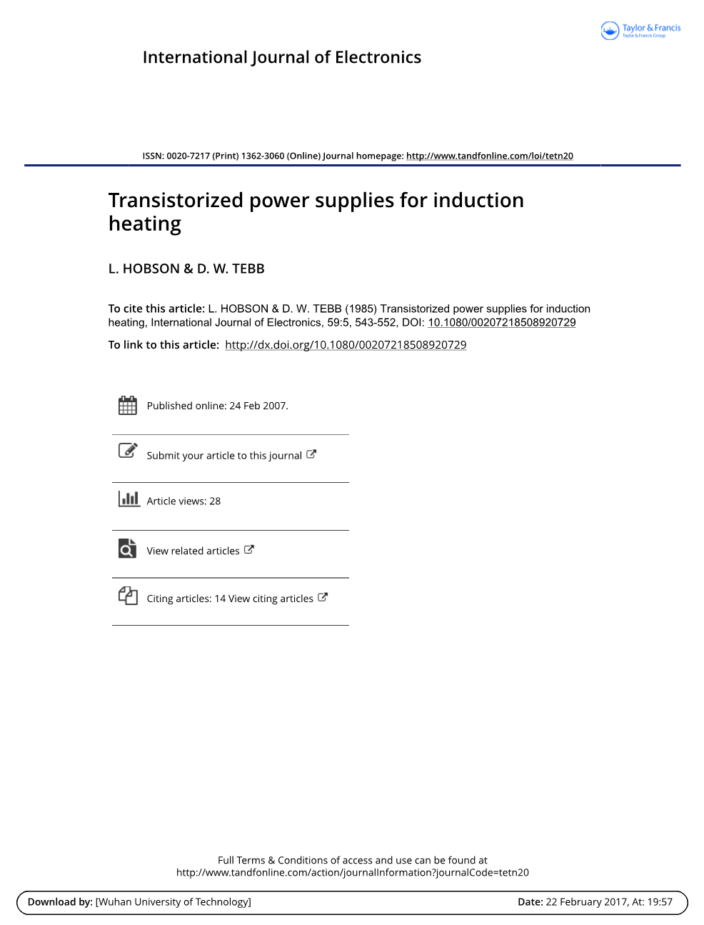 将功率MOSFET引入到适用于感应加热负载的高频周波变换器配置中已证明是成功的。 操作频率超过100 kHz。