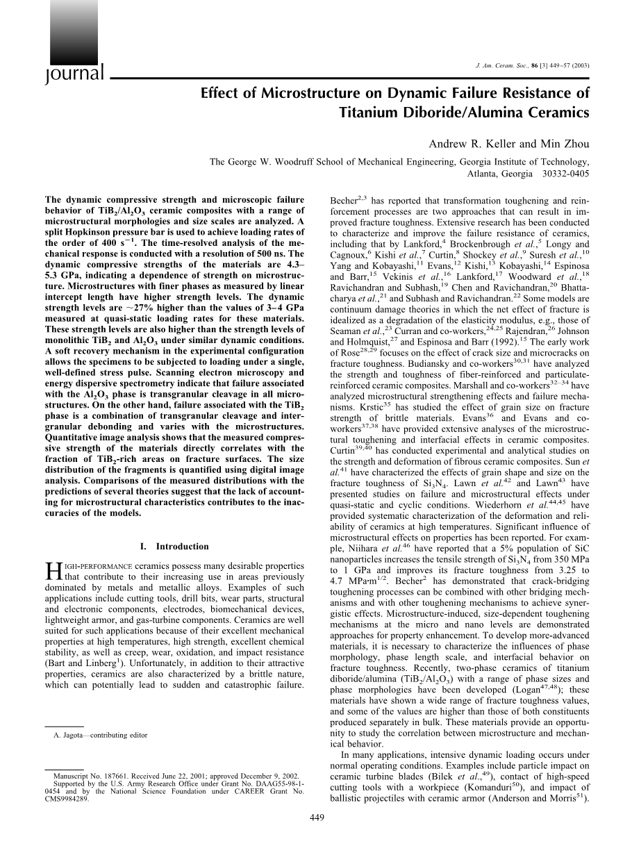- 显微结构对TiB2/Al2O3陶瓷动态断裂抗力的影响外文翻译资料
