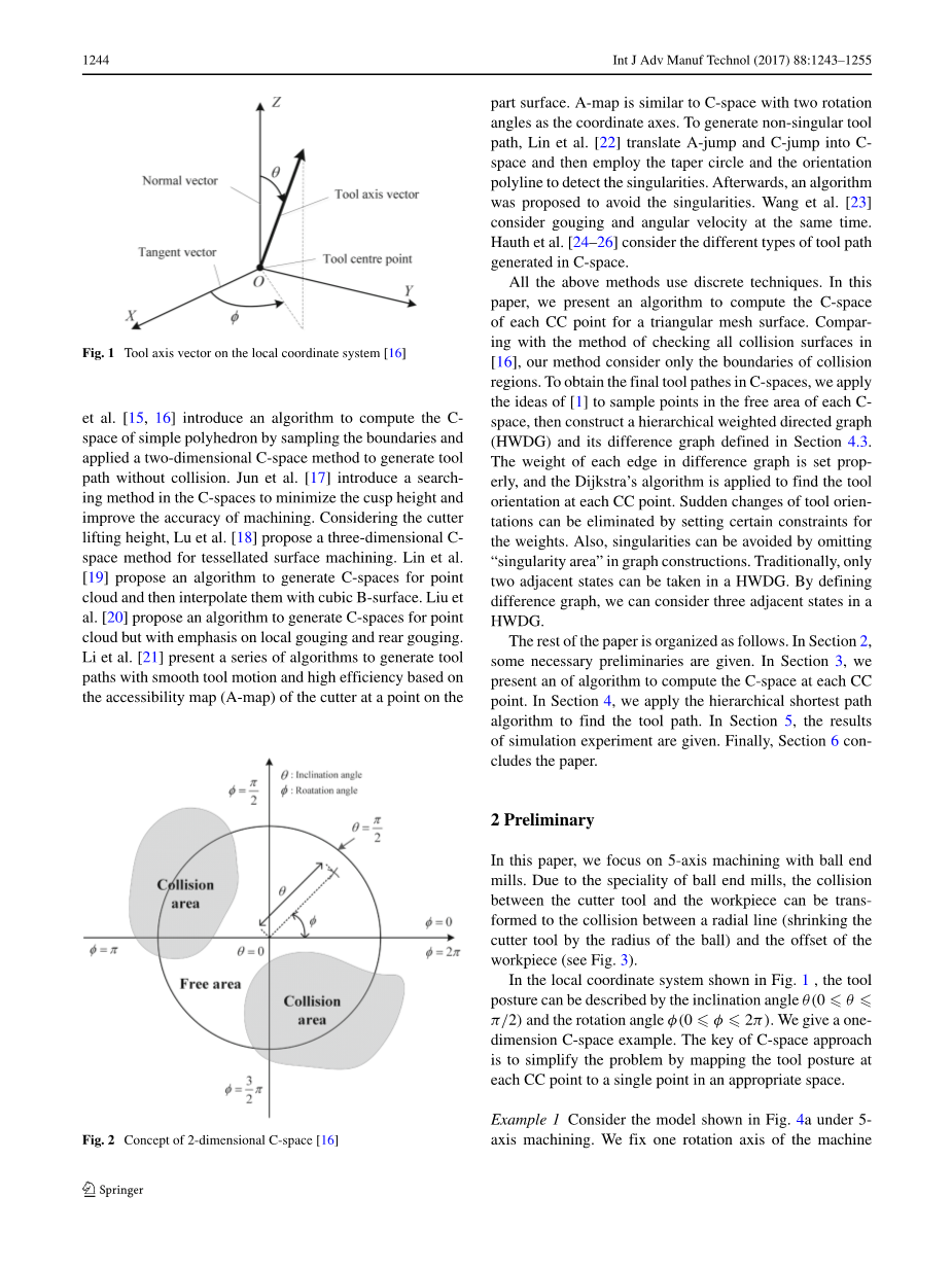 本文的余下部分组织如下:在第二部分中,给出了一下必要的初步措施。在第三部分中,我们提出了一种在每个CC点处计算C空间的算法。在第四部分中,我们运用分层最短路径算法来找到刀具路径。在第五部分中,给出了实验仿真结果。最后,在第六部分总结了此文。