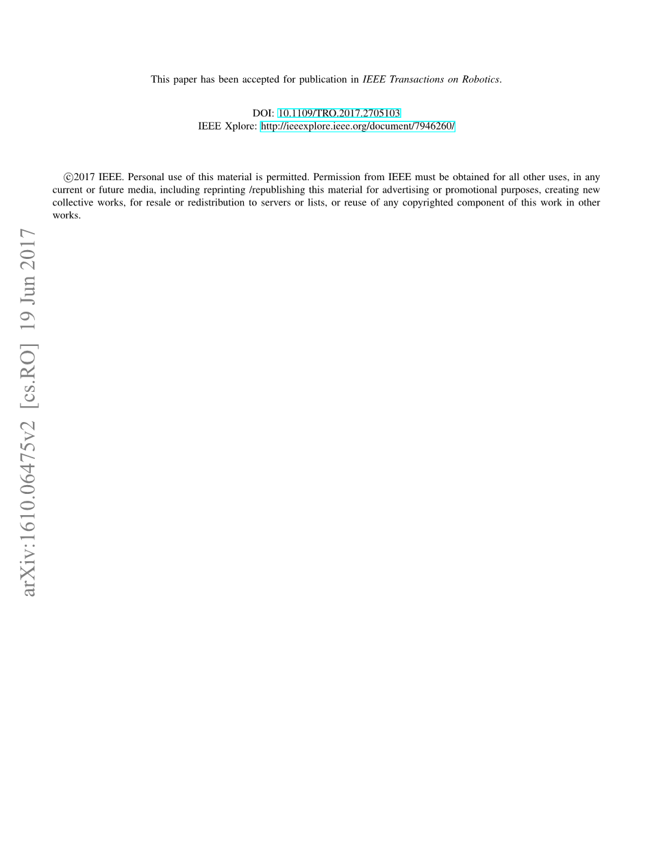 摘要——我们提出的ORB-SLAM2是一个对于单眼,立体和RGB-D相机完全的即时定位与地图构建系统,包括地图重用,闭环检测和重新定位功能。 系统在标准CPU上,从小型手持室内场景到无人机飞行工业环境和汽车在城市周围驾驶,这一系统都能进行实时工作。 我们的基于单眼和立体声束调整的后端观测允许使用度量进行准确的轨迹估计规模。 我们的系统包含一个轻量级定位模式,该模式为未映射的地区利用视觉里程计追踪并且与映射允许零漂定位的点相匹配。该29种流行公开序列的评估显示了我们的方法达到了最先进的精度,在大多数情况下是最高的准确的即时定位与地图构建解决方案。 我们发布源代码不仅为SLAM社区的利益,而且旨在成为其他领域的研究人员简单易用的SLAM解决方案。