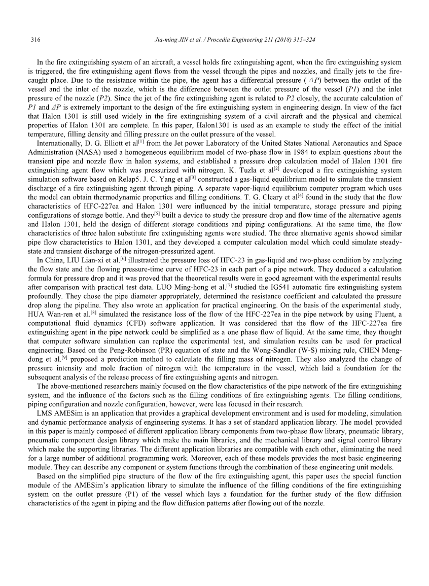 上述研究人员主要专注于灭火系统管道网络的流动特性,以及灭火剂填充条件等因素的影响。然而,在他们的研究中很少关注填充条件,管道配置和喷嘴配置。