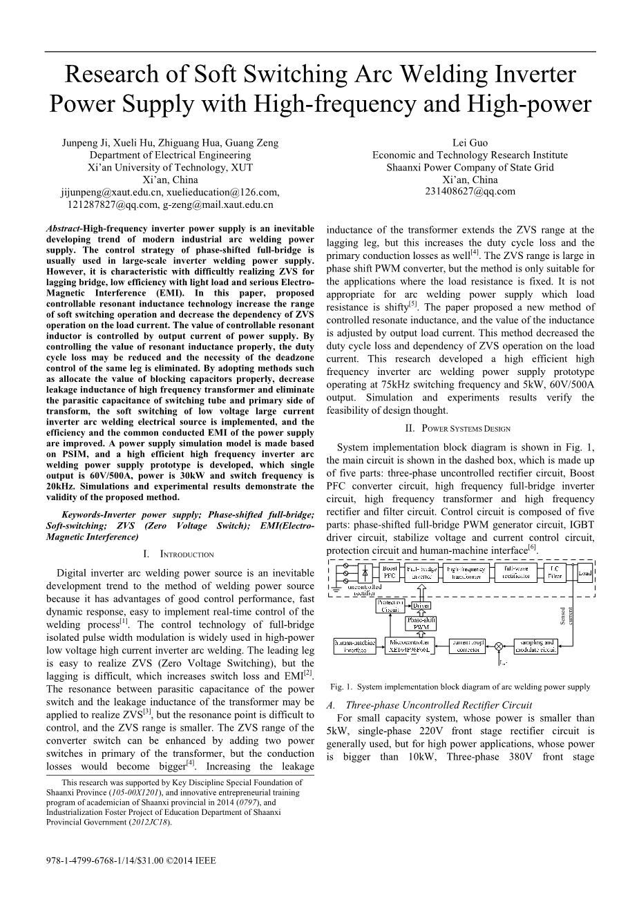 摘要 :高频逆变电源是现代工业电弧焊电源的必然发展趋势。 移相全桥控制常用于大型逆变焊接电源中。然而,由于滞后电桥的ZVS难以实现,它具有轻负载效率低,电磁干扰(EMI)严重的特点。本文提出的可控谐振电感技术增加了软开关操作的范围,并降低了ZVS操作对负载电流的依赖性。可控谐振电感的值由电源的输出电流控制。 通过适当地控制谐振电感的值,可以减少占空比损耗,并且消除了同一支路的死区控制的必要性。通过采用这样的方法正确分配阻塞电容的值,减小高频变压器的漏感和消除开关管的寄生电容和初级侧转换,低电压大电流的软开关逆变电弧焊电源的实施,和效率和电源的常见传导EMI得到改进。基于PSIM制作了电源仿真模型,开发了一款高效率的高频逆变弧焊电源原型,单输出为60V / 500A,功率为30kW,开关频率为20kHz。 仿真和实验结果证明了该方法的有效性。