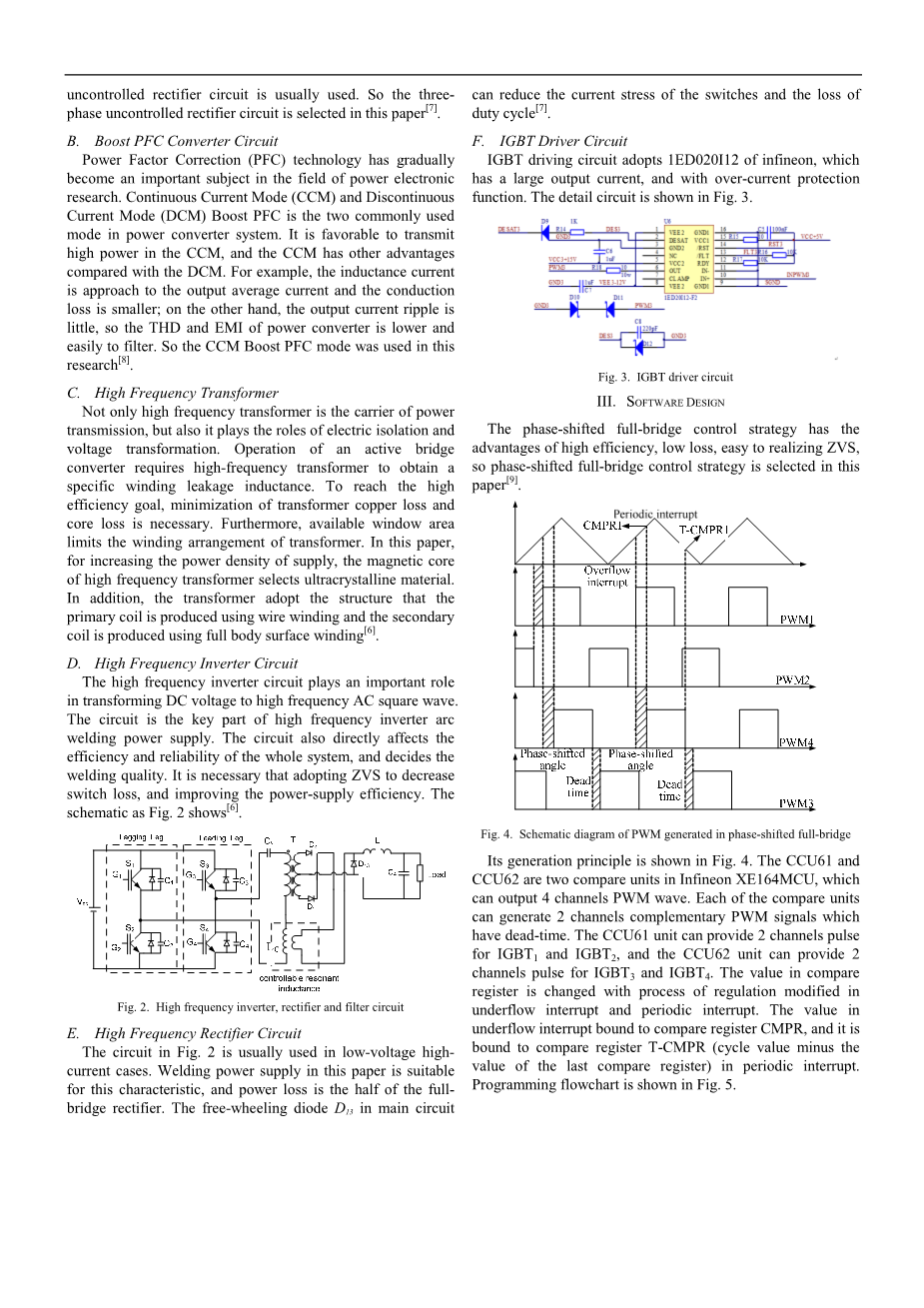 图2中的电路通常用于低电压大电流的情况。本文中的焊接电源适用于此特性,而功率损耗是全桥整流器的一半。主电路中的续流二极管D13可以降低开关的电流应力和占空比的损失[7]。