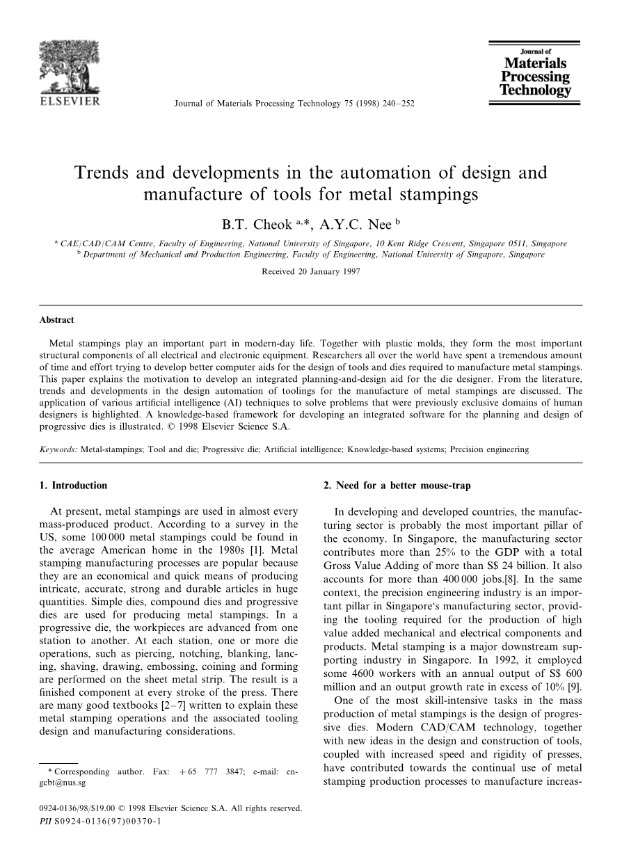 Journal of Materials Processing Technology 75 (1998) 240 plusmn; 252