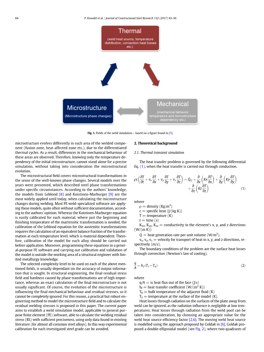 显微结构领域涵盖了众所周知的相变的显微结构变化。介绍了多年来的几种型号,其中描述了在具体情况下的钢相转变。根据作者的知识,Leblond [8]和Koistinen-Marburger [9]的模型在焊接过程中计算微观结构变化之前,应用最广泛。根据作者的意见,大多数FE焊接专业软件正在应用这些模型,经常没有足够的文档。而对于每种材料,只需要马氏体转变的开始和结束温度就可以轻松校正柯斯提宁 - 马布尔格方程,对于奥氏体转变,Leblond方程的校准需要计算每个变形的等效平衡分数温度水平,这是物质依赖的。因此,每个合金的模型校准应在施工前进行。此外,在通用FE软件中对这些方程进行编程,并执行模型的校准和验证,是在具有有限冶金知识的结构工程师的工作区域之外。