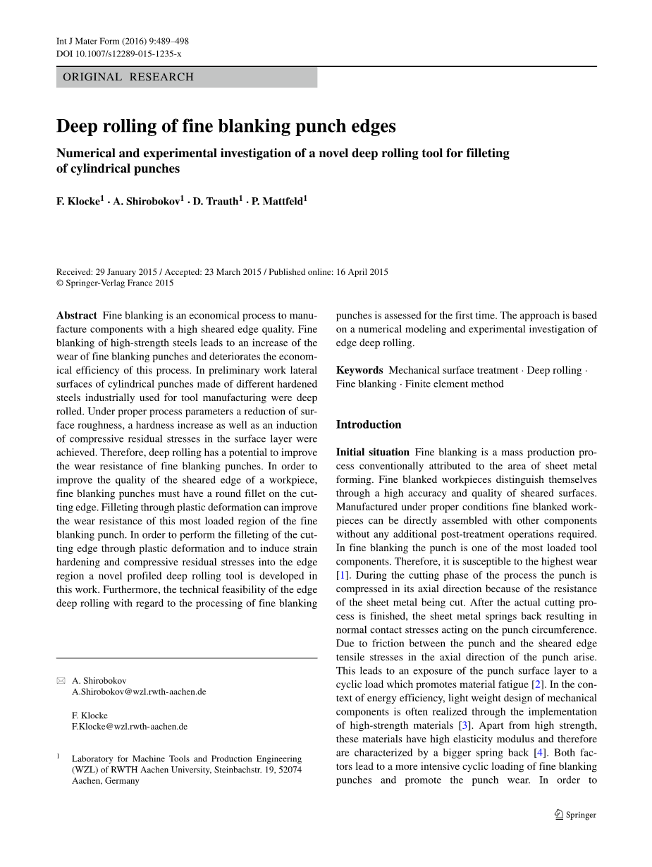 F. Klocke· A. Shirobokov · D. Trauth· P. Mattfeld