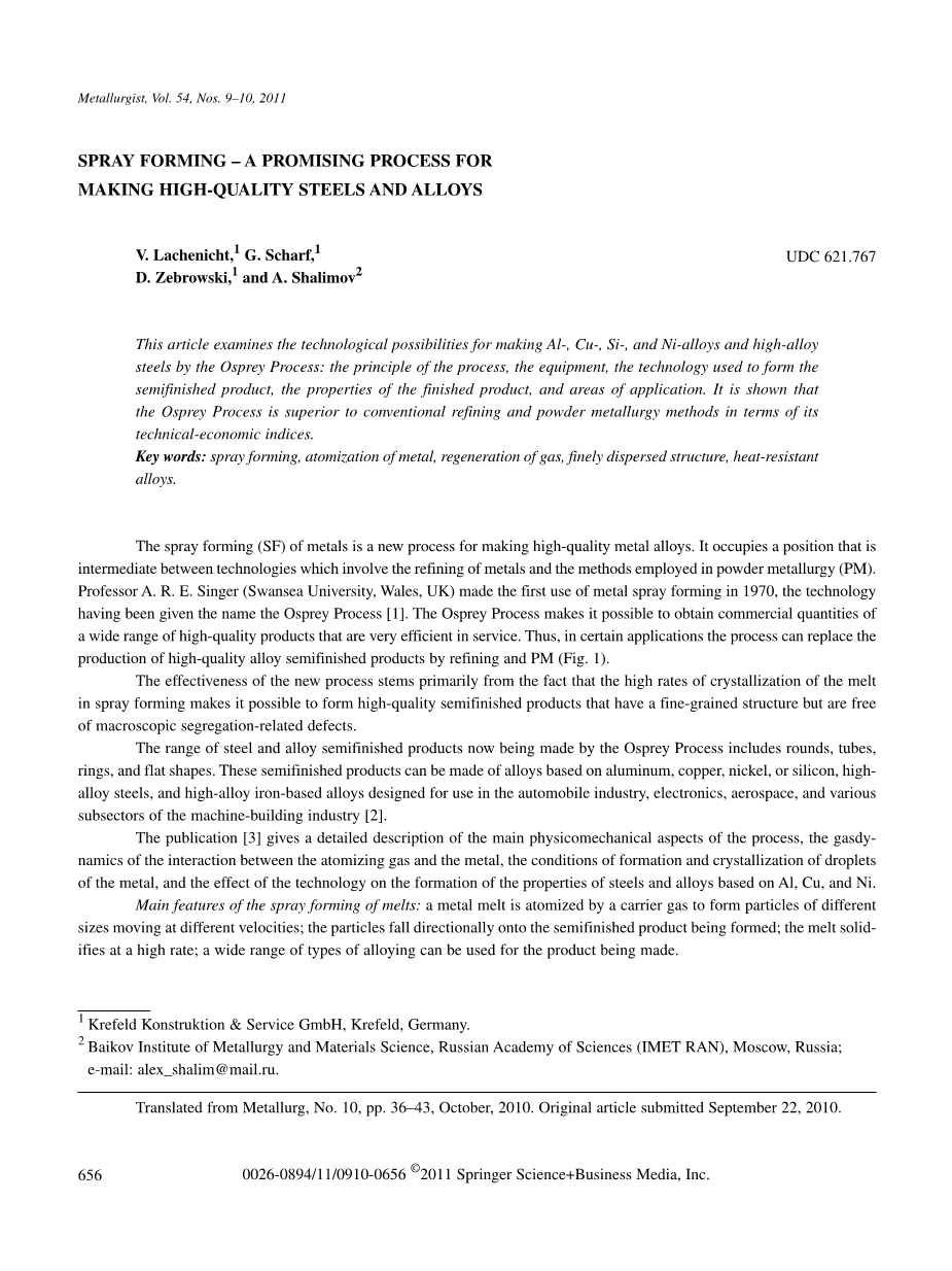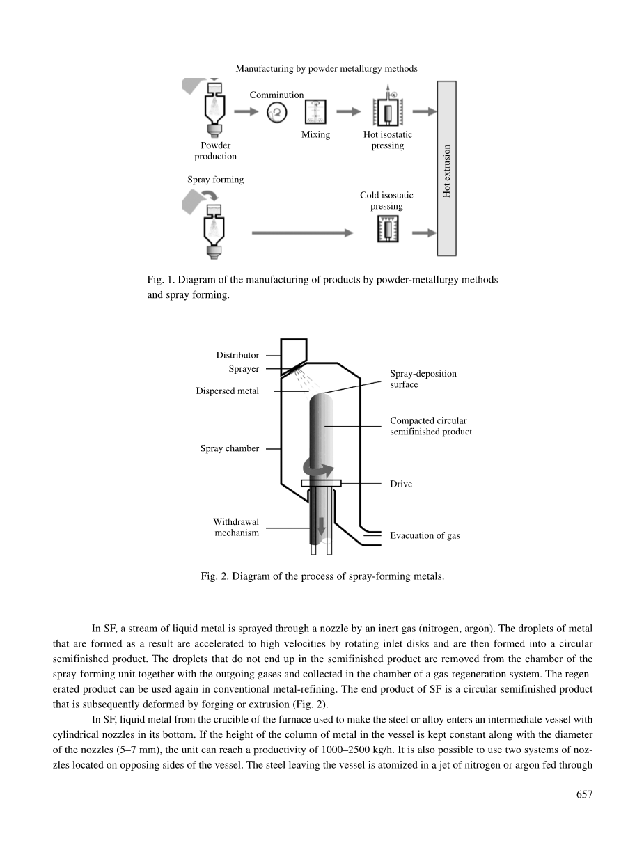 出版物[3]给出了喷射成形工艺的机械物理方面的描述, 雾化气体与金属之间的相互作用的气体动力学,金属液滴的形成和结晶的条件,和该技术基于铝,铜,以及镍钢和合金的性质的效果。