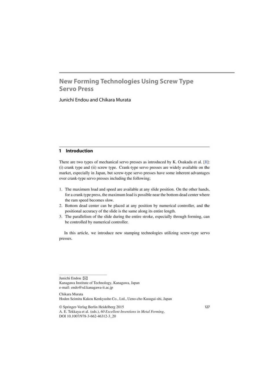 1. Osakada, K., Mori, K., Altan, T., Groche, P. 2011, Mechanical servo press technology for metal forming. CIRP Annals – Manufacturing Technology 60 , 651–672.