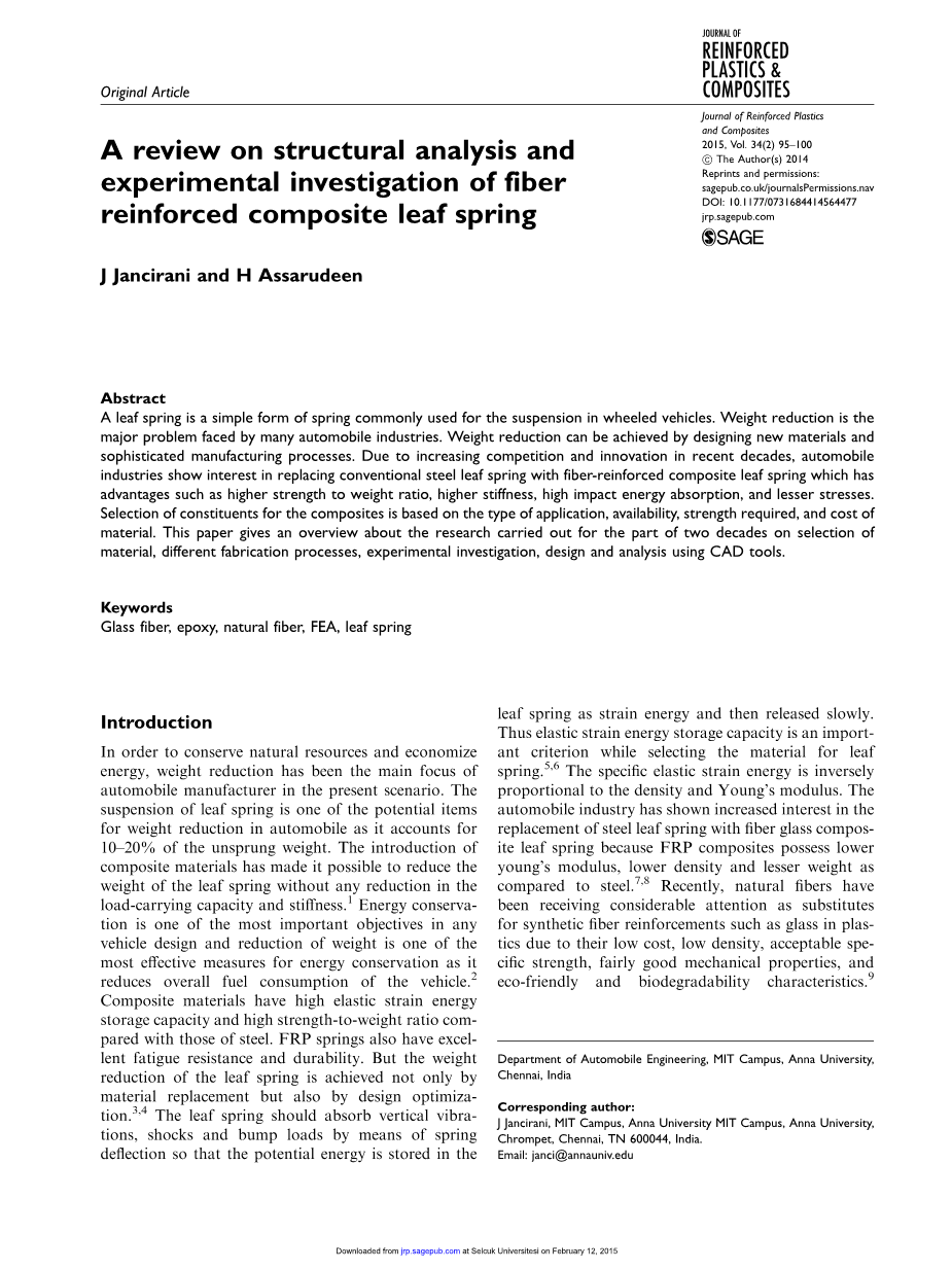玻璃纤维,环氧树脂,天然纤维,有限元分析,板簧