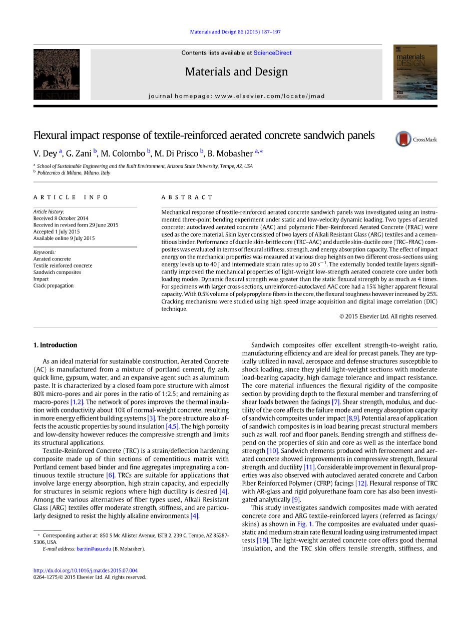 摘要:采用静态和低速动态加载下的三点弯曲试验,研究了纤维增强加气混凝土夹芯板的力学影响。实验用了两种类型的加气混凝土:分别由热压加气混凝土和添加了聚合纤维的加气混凝土制作而成的夹芯。表面层则是由两层抗碱性纤维玻璃和粘结剂组成。柔性表面脆性内核与表面和内核都是脆性纤维的性能是是根据抗弯刚度、强度和能量吸收能力进行判定的。影响的效果机械性能上的能量以不同的横截面上的不同高度来测量能量级最高可达40 J,中间应变速率高达20秒。两种夹芯板中外部粘合的纺织层显著提高了轻质低强度充气混凝土芯的力学性能。动态抗弯强度比静态抗弯强度高出4倍。对于那些较大的横截面的,没有强化的AAC核,其表面的抗弯曲性能提高了15%。而添加了0.5%的聚丙烯纤维的夹芯板,其弯曲韧性增加了25%。本实验采用高速图像采集和数字图像关联(DIC)的技术研究了裂纹机理。