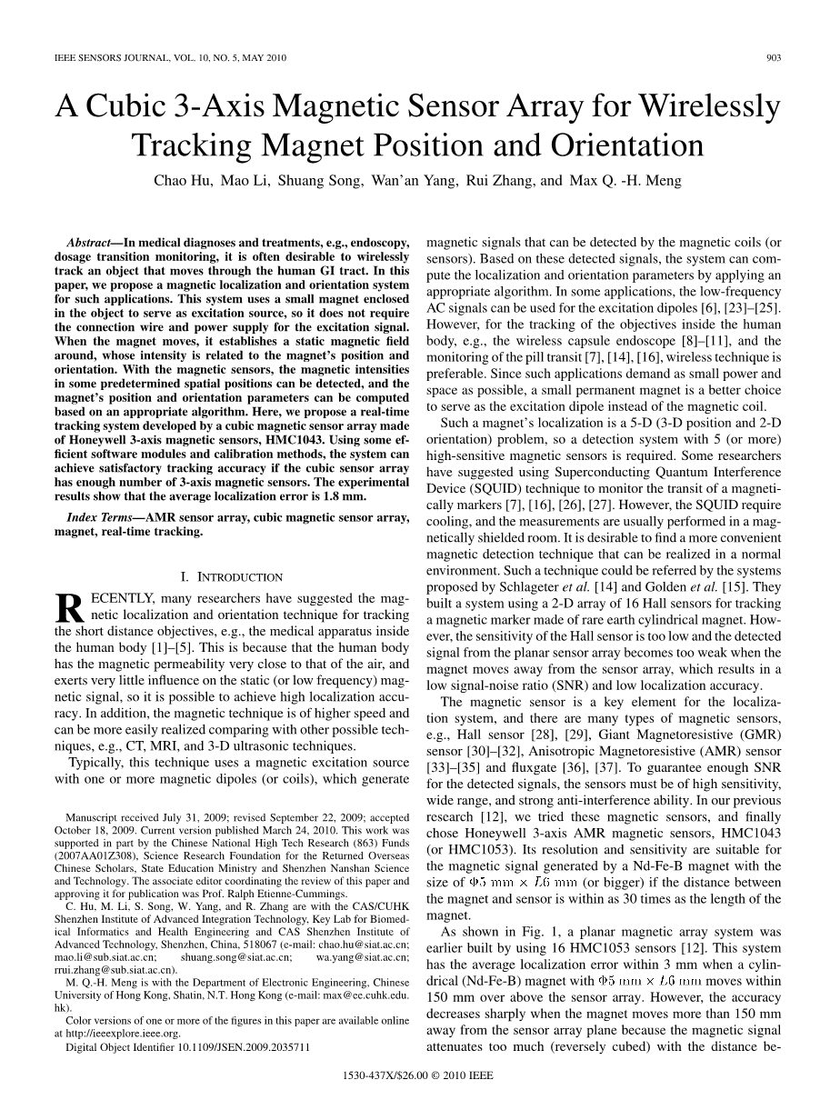 索引术语 - AMR传感器阵列,立方磁传感器阵列,磁体,实时跟踪。