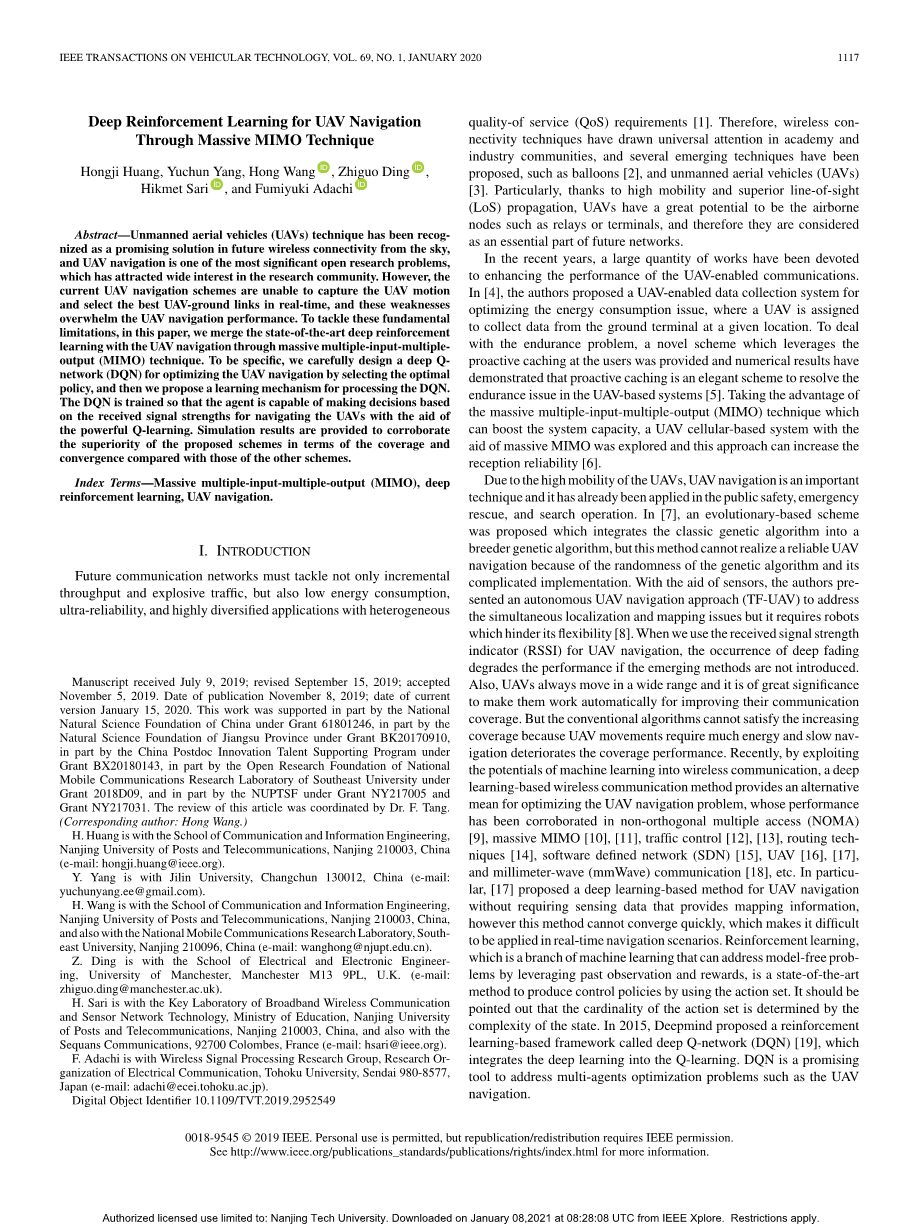 基于深度强化学习和大规模MIMO技术的无人机导航