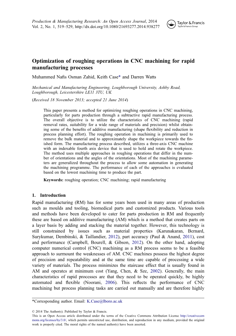使用CNC机械进行RM操作,有两大问题需要强调。第一,旋转的工件保证流程的连续性,而不需要任何重新加固工件的任务。然而这些方向限制了在完成操作中必须进行的粗加工操作。最常用的方法是优化通过操作过程的切割参数来加工操作。然而,这在cnc-rm应用程序中并不适用,因为它往往会使计划变得复杂。因此,优化是通过粗化的方向进行的。执行粗加工可能使用能够达到高品质的移除操作的方向集而不是依赖表面的可见性来决定方向。时间是主要影响加工时间的因素。粗略的操作可以被认为是一个非常耗时的过程特别是在模具和模具制造过程中涉及到大量的材料去除。因此,保持适当的控制并保持操作的过程效率是非常重要的。第二个问题是,在开始的时候,切割工具的插入的过程。粗磨工具需要把材料切到尽可能深的深度避免薄物质形成。增加的深度可能会增加工具失败的风险,因为工具很容易因为切割力而偏转。增加接触长度将会影响工具性能为了达到工具的温度并导致侧面磨损。基于在这些问题,本文提出了一种方法和来优化在数控加工中RM操作粗加工的方法。