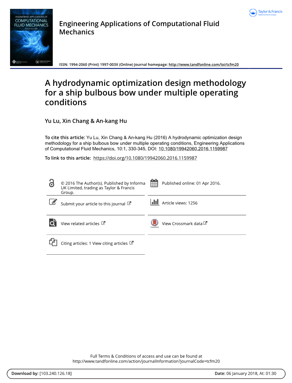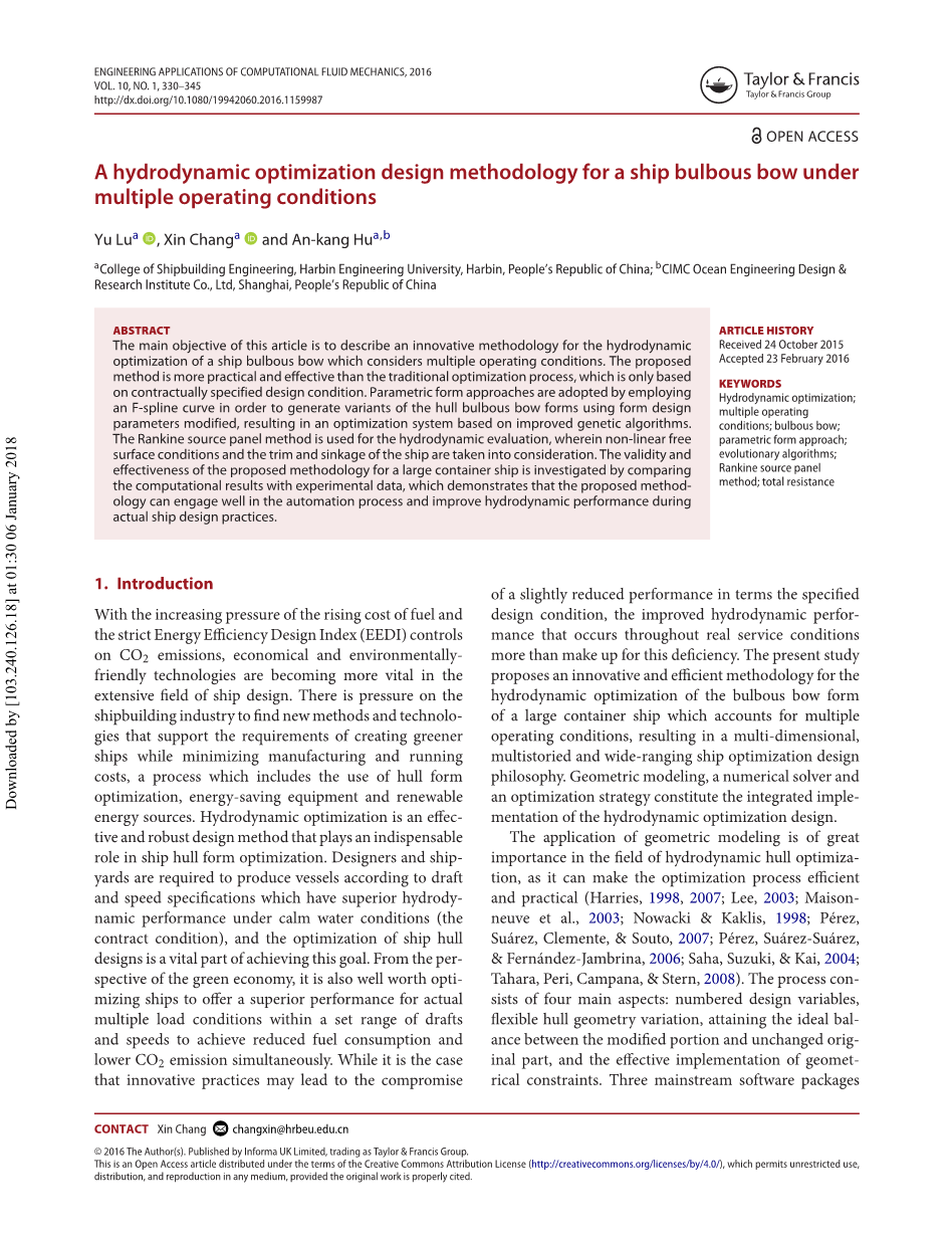 在各种研究中都探索了传统的优化技术,即最速下降,共轭梯度和顺序二次规划(Peri,Rossetti和Campana,2001;Tahara,Stern和Himeno,2004;Valorani,Peri和Campana,2003)。随着现代软计算技术在各个领域的广泛实际应用(Wang,Chau,Xu,&Chen,2015;Wu,Chau,&Li,2009;J.Zhang&Chau,2009;S.Zhang&Chau,2009年),其他类型的优化算法也正在开发和改进中(Chau&Wu,2010;Taormina&Chau,2015)。最流行,最强大的进化算法(EA)技术引起了人们的密切关注,其中主要涉及遗传算法(GA),进化策略(ESs)和进化规划(EP)。在这些优化技术中,遗传算法和各种改进的算法主要用于解决船体形状修改问题(Dejhalla,Mrsa和Vukovic,2002年;Grigoropoulos和Chalkias,2010年;Grigoropoulos,Chalkias和Tikkos,2004年;Liang,Cheng,李,项,2011;李斯,梁,孙,2014;安川,2000)。改进的遗传算法的代表,即非支配的排序遗传算法II(NSGA-II;Deb,Agrawal,Pratap和Meyarivan,2000;Srinivas和Deb,1994),具有较低的计算要求和无参数的共享方法,可以找到更好的算法。解决方案的传播。在这项研究中使用了NSGA-II,并考虑了多种载荷条件(其被指定为水动力优化的目标函数),用于寻找船舶的最小总阻力。