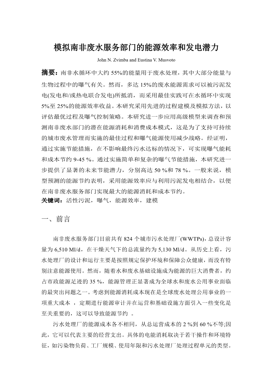 - 两种水处理厂活性污泥生物群落生物指示物真核生物的比较:一个案例研究外文翻译资料