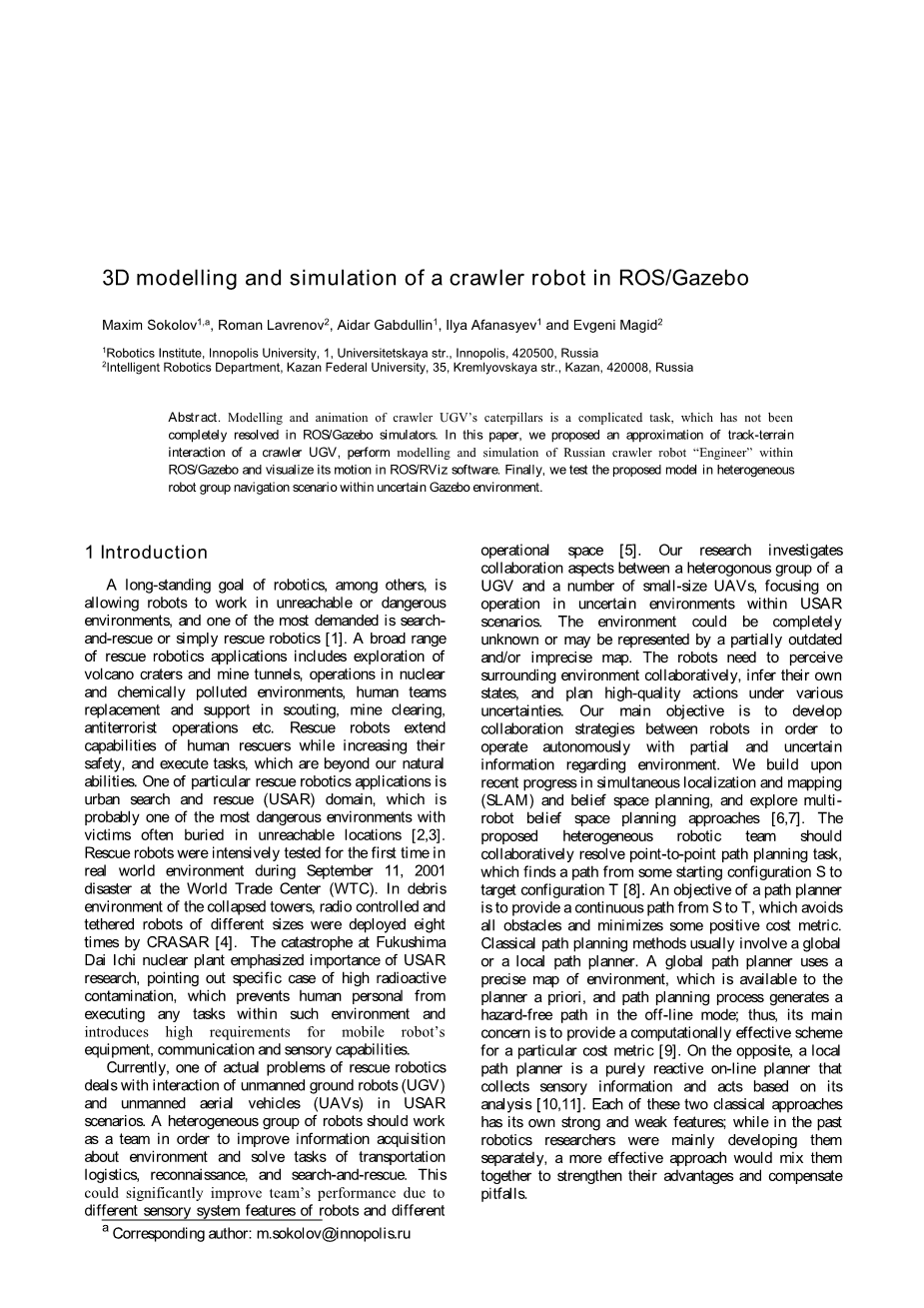 [3] M. Pecka, K. Zimmermann and T. Svobada ,“ Fast Simulation of Vehicles with Non-deformable Tracks,” Proceeding of International Conference on Intelligent Robots and Systems, 2017.