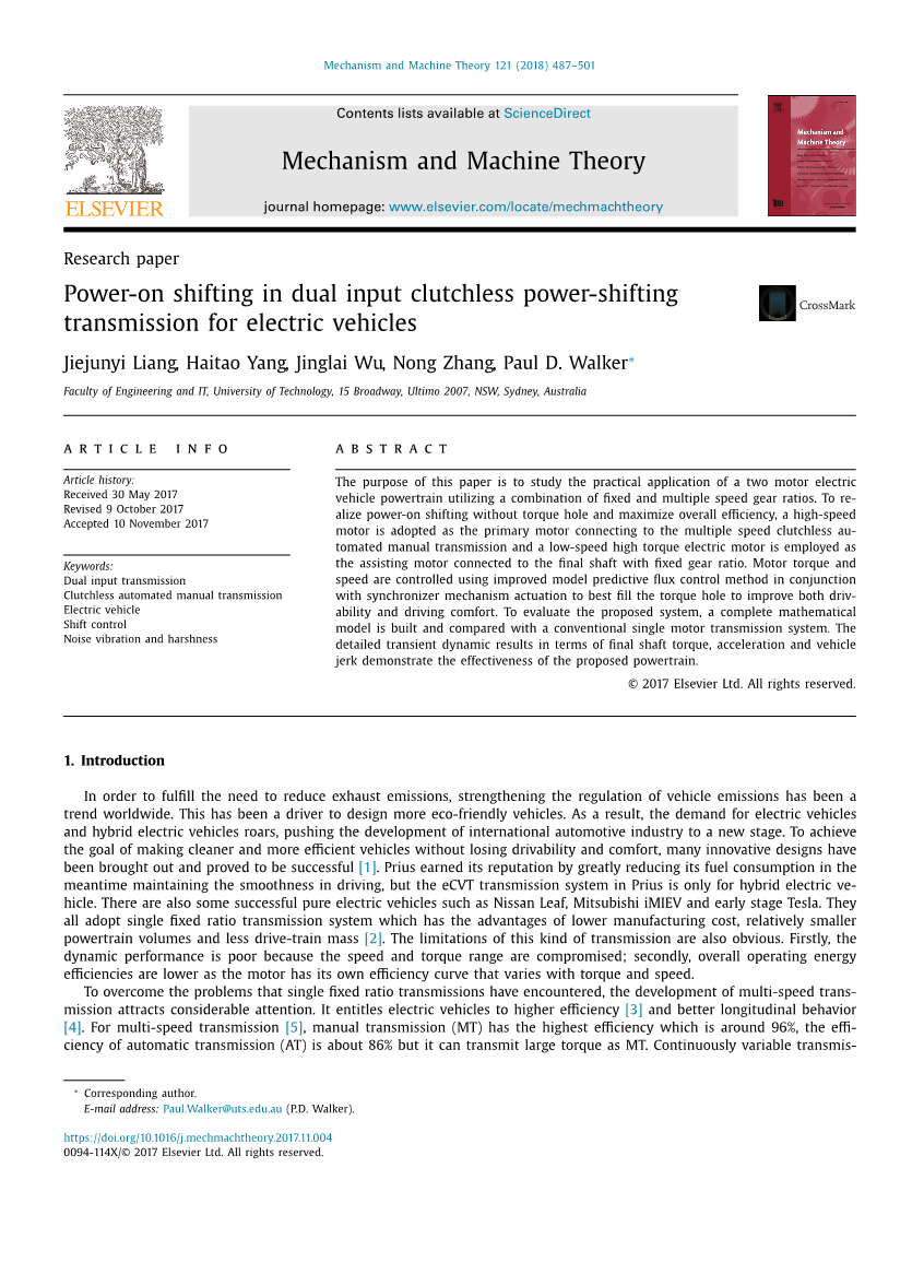 为了满足减少废气排放的需要,加强对车辆排放的监管已成为全世界的趋势。这是设计更环保车辆的驱动力。因此,对电动汽车和混合动力汽车的需求飙升,推动了国际汽车工业的发展进入了一个新的阶段。为了实现制造更清洁,更高效的车辆而不损失驾驶性能和舒适性的目标,许多创新设计已被提出并证明是成功的。普锐斯在保持驾驶平稳性的同时大大降低了油耗,赢得了声誉,但普锐斯的eCVT变速箱系统仅用于混合动力汽车。还有一些成功的纯电动汽车,如日产Leaf,三菱iMIEV和早期特斯拉。它们都采用单一固定比传动系统,具有制造成本低,动力总容积相对较小,动力传动系统质量较小的优点。这种传输的局限性也很明显。首先,动态性能差,因为速度和扭矩范围受到损害;其次,由于电动机具有随扭矩和速度变化的自身效率曲线, 因此整体运行能量效率较低。