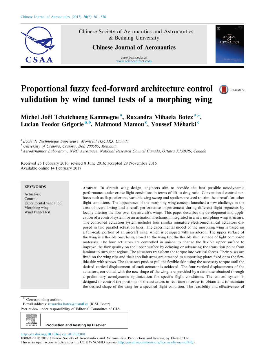 MichelJoeuml;lTchatchueng Kammegne a,Ruxandra Mihaela Botez a,*,