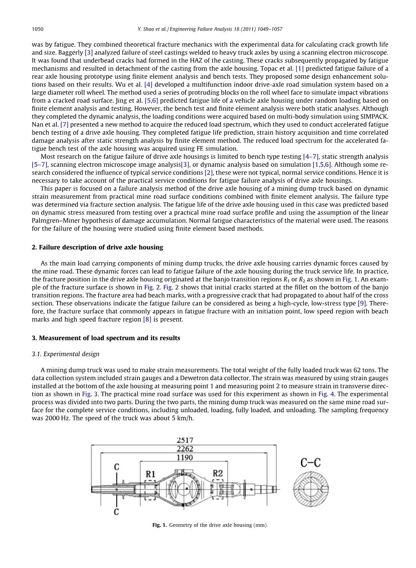 本文结合实际矿山路面条件,结合有限元分析,对矿用自卸汽车驱动桥壳的失效分析方法进行了研究,并通过断口分析确定了失效形势。在实际矿山道路表面轮廓基于动态应力测量的测试和利用Palmgren矿工假设–线性损伤累积预测的假设在这种情况下使用的驱动桥壳疲劳寿命,利用了材料的疲劳特性,用有限元法研究了桥壳失效的原因。