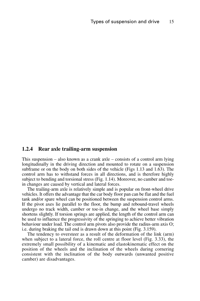 这是一种特殊类型的拖车臂轴,主要安装在后轮和四轮驱动的客车上,也可以在前轮驱动的车辆上看到(图1.15)。从顶部(图1.16)可以看出,控制臂轴为EG旋转为10°到25°,可以向后旋转5°(图3.36)。