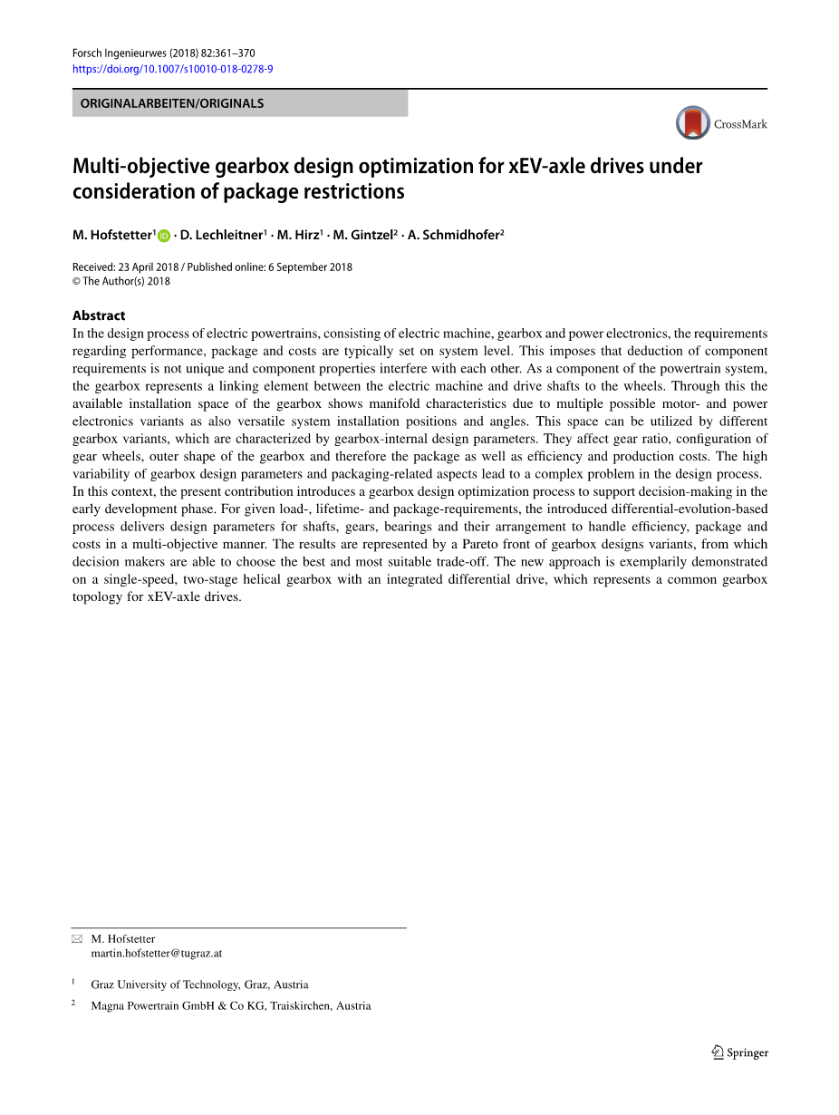 Hofstetter1 · D. Lechleitner1 · M. Hirz1 · M. Gintzel2 · A. Schmidhofer2