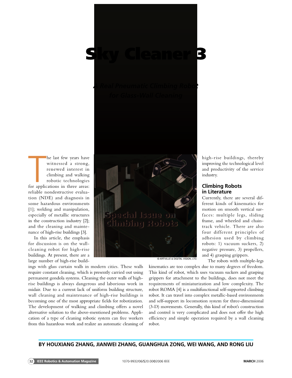 近几年来,人们对攀爬和步行机器人技术在三个领域的应用有了强烈的兴趣:可靠的无损评估(NDE)和在某些危险环境中的诊断[1];焊接和操纵,特别是建筑行业的金属结构[2];以及高层建筑的清洁和维护[3]。