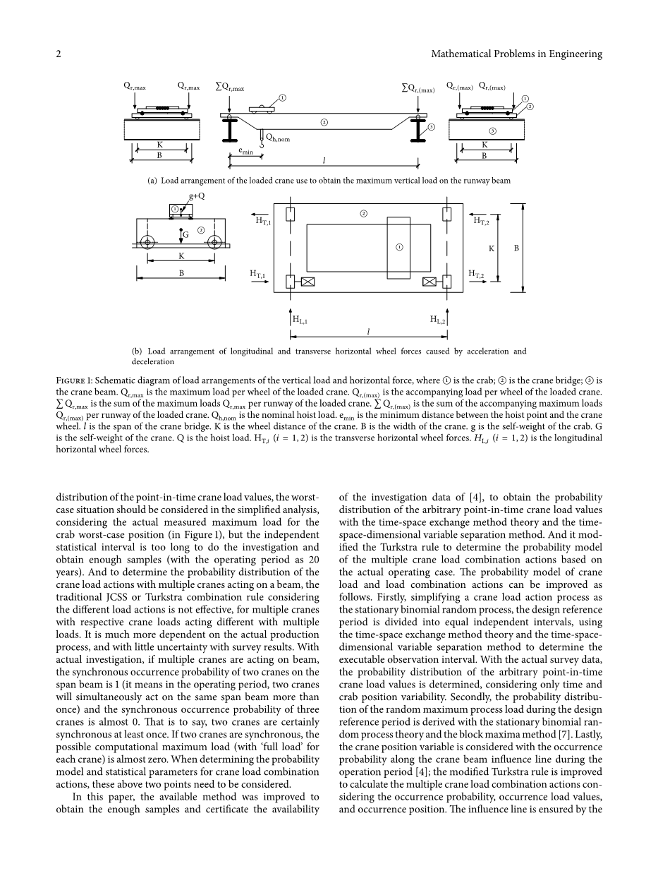 2.2. 起重机载荷实时分布。当考虑影响线上的单个起升载荷时,对于起升载荷(垂直载荷和水平载荷)的平稳二项式随机过程,以下假设是必要的: