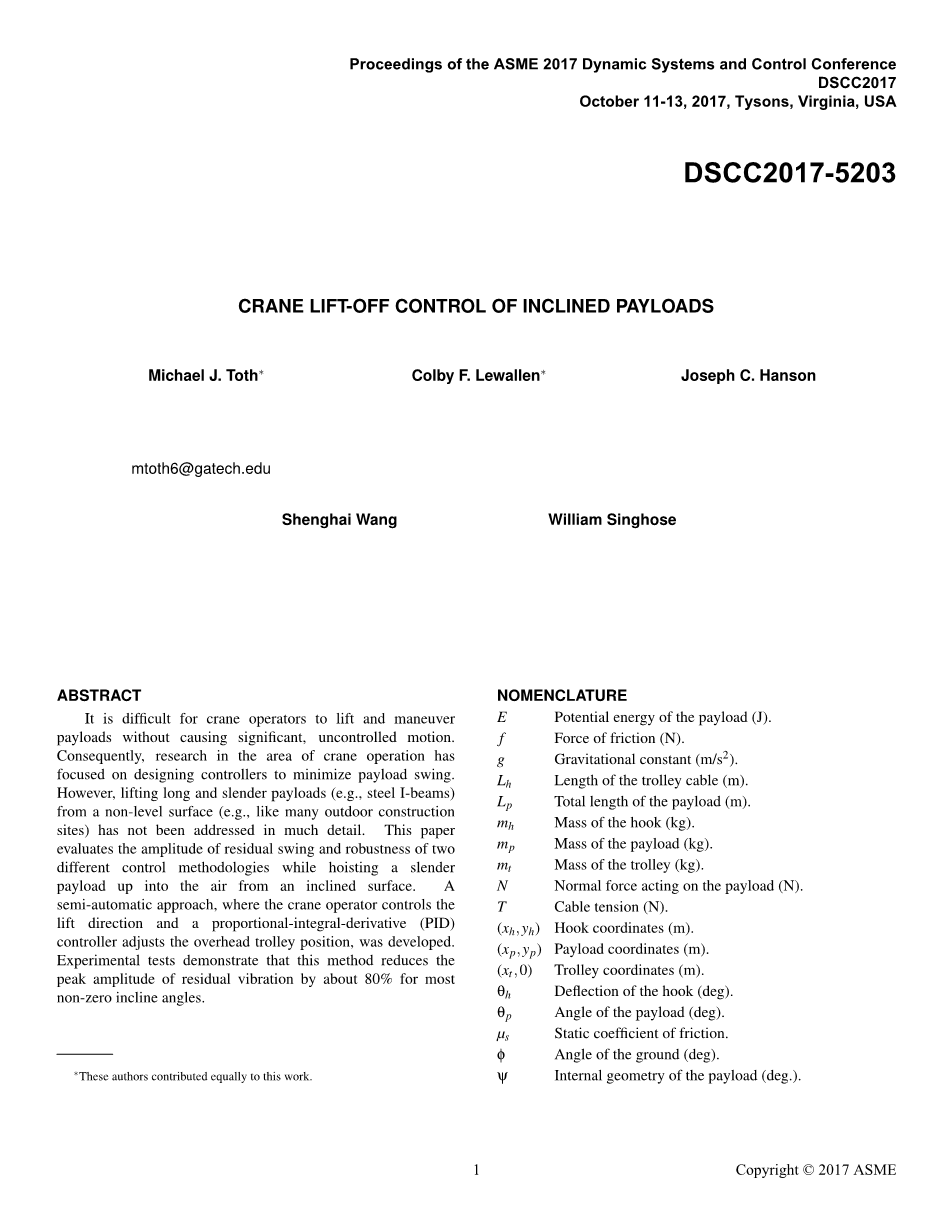 当载荷在倾斜面上时,作用于载荷的重力和摩擦力相互抵消。对于起重机操作员来说,将负载从具有未知摩擦系数的倾斜表面上提升,这是一项特殊的挑战。此外,天气条件(如雨、雪、冰等)也可以改变摩擦系数。目前,工人们雇用了一些人来定位和控制负载,这是具有潜在危险的。由于滑移条件具有潜在的危险,因此控制器必须尽量减少发生这种情况的机会。