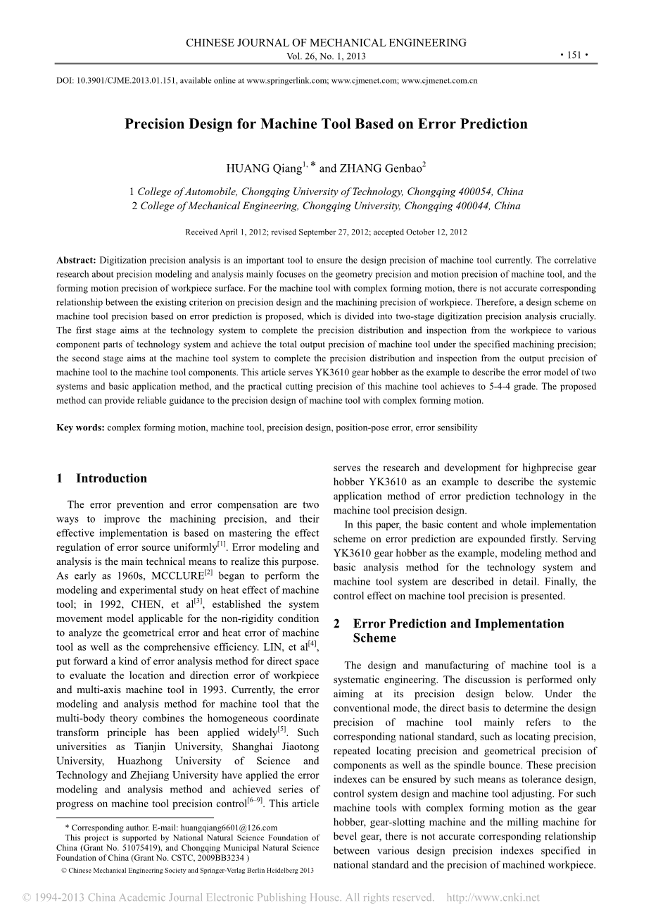错误的预设和误差补偿是两种为了提高加工精度的方法,它们的有效的实现是基于掌握调节误差源均匀的影响。误差建模和分析是实现这一目的的主要技术手段。早在20世纪60年代,McClure开始执行并对机床热作用的实验研究工具;1992,陈等人,建立了系统的运动模型适用于非刚性条件,分析了几何误差和机床热误差以及综合效率的工具。1993,林等人,提出了一种误差分析方法来评估多轴机床直接的空间位置和方向误差。目前,误差建模及分析机床,多体理论结合齐次坐标方法变换的原理得到了广泛的应用。诸如天津大学,上海交通大学,华中理工大学,浙江大学应用技术和误差方法并取得了系列的建模与分析对机床精度控制研究的进展。本文旨在研究和开发高精度滚齿机YK3610为例来描述机床的精度设计系统误差预测技术中的应用方法。在本文中,实施的基本内容和整体在错误的预测方案进行了阐述。以滚齿机YK3610为例详细描述建模基本分析方法和机床系统技术。最后,本文对机床精度的控制效果作出预测。