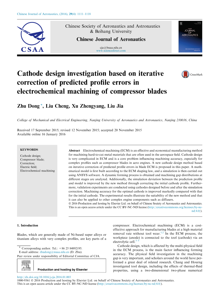 通常由Ni基超合金或具有非常复杂轮廓的钛合金制成的叶片是压缩机的关键部件。 电化学加工(ECM)是在没有工具磨损的情况下以高材料去除速率制造叶片的成本有效的方法。 在ECM过程中,工件(阳极)经由电解池连接到工具(阴极)。