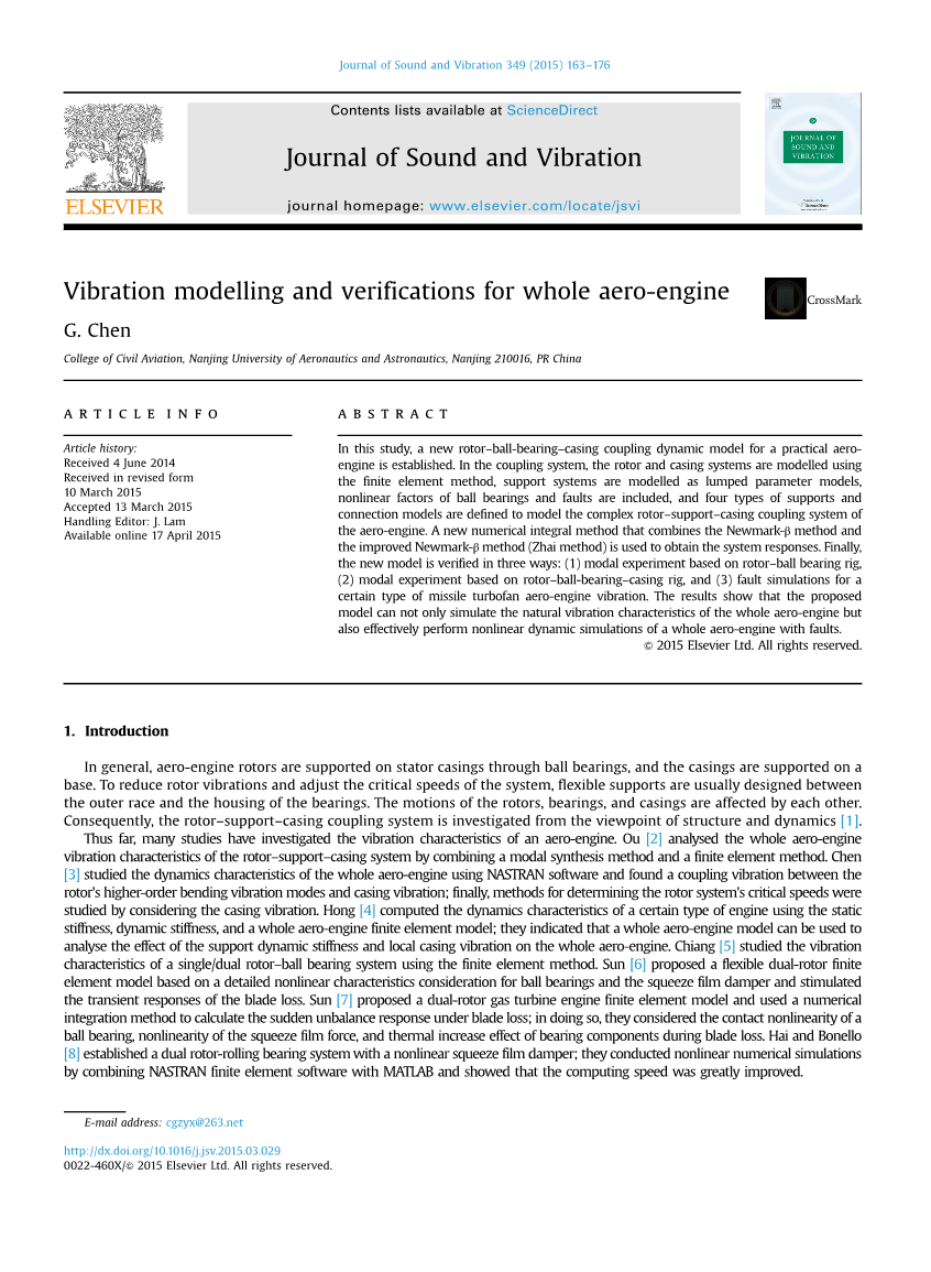 并且现代航空发动机的结构非常复杂,计算机几乎不能同时完成大量计算负荷的要求,也很难建立一种详细的航空发动机有限元模型。此外,很难解决如此复杂的非线性响应。就此而言,为了解决航空发动机的整体振动,本文提出了一种新型的转子-支承-机匣非线性耦合模型。在提出的模型中,转子和机匣系统使用有限元法建模;支承系统采用集中参数法建模;计入了球轴承的非线性因素和各种误差;四种支承和耦合模型共同构成了这复杂的转子-支承-机匣耦合系统。并使用了一种新型的数值积分法,包含了Newmark-beta;法和改进的Newmark-beta;(翟法)。最终,新型模型可以以三种方式验证。