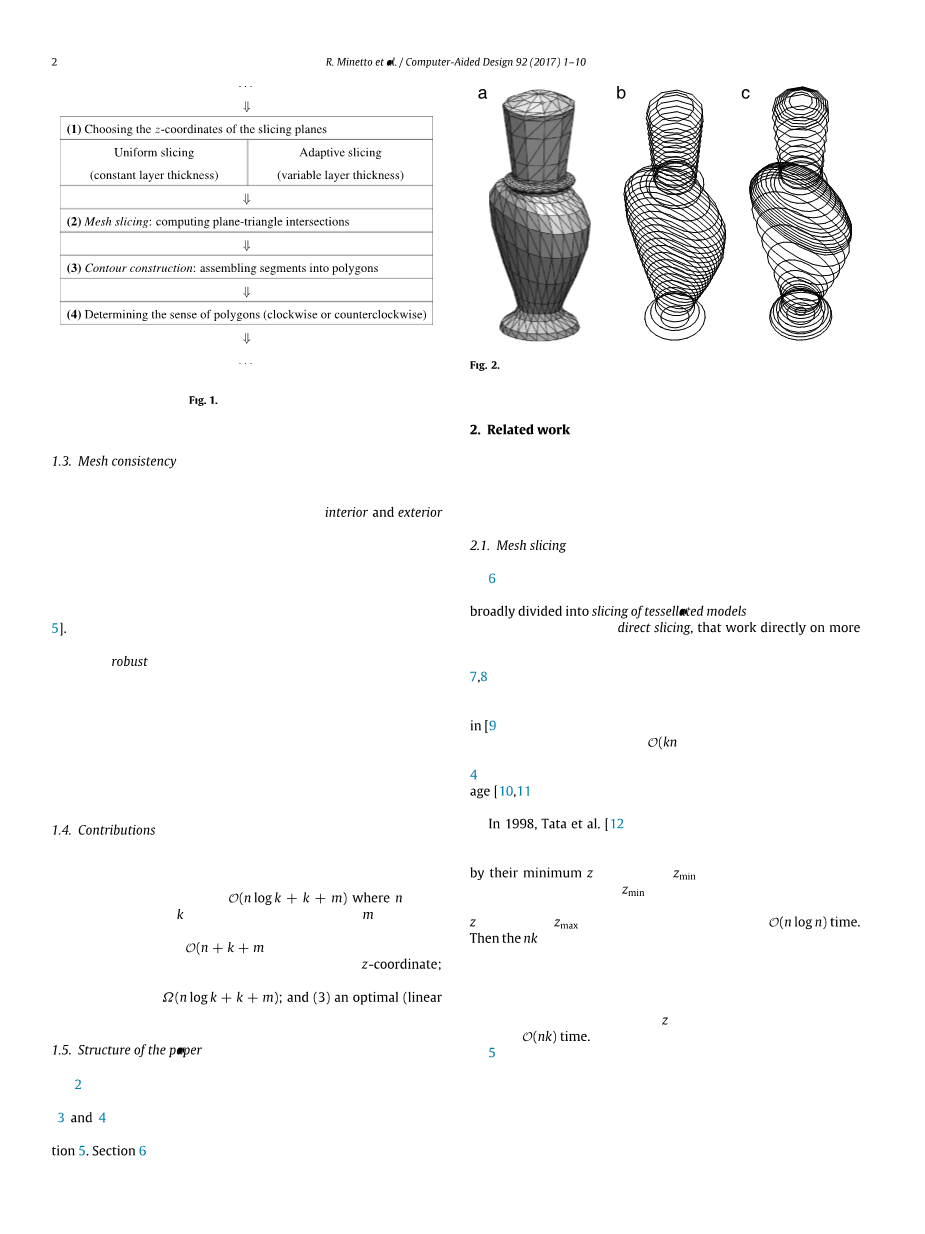 本文描述了求解网格剖分步骤(第3节)和轮廓构造步骤(第4节)的最优算法,为简单起见,本文仅将网格切片任务称为切片。