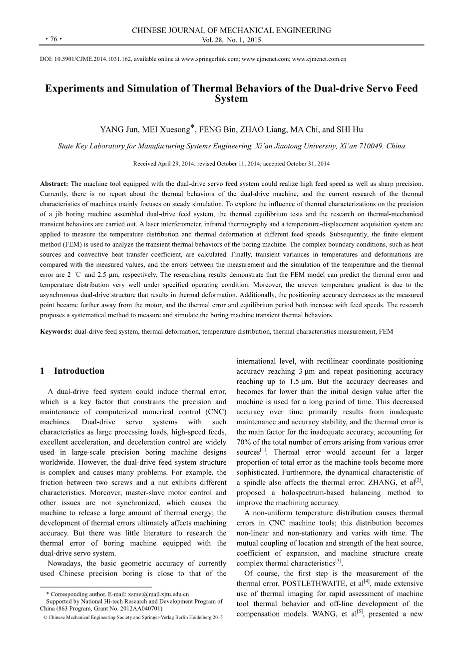 关键词:双驱进给系统,热误差,温度分布,热效应测量,有限元分析。