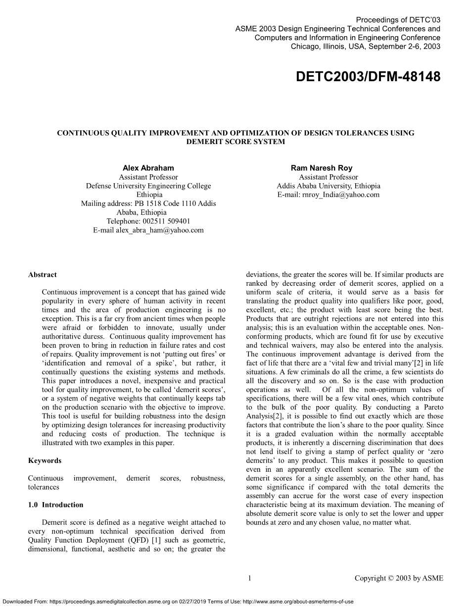 持续改进是近年来在人类活动的各个领域广泛普及的概念,工艺生产领域也不例外。这与古代人们害怕或禁止创新,通常受权威胁迫的情况相去甚远。事实证明,持续的质量改进可以降低故障率和维修成本。质量改进不是“扑灭火灾”或“发现并移除长钉”(发现并解决问题),而是不断质疑现有的系统和方法。 本文介绍了一种新颖,廉价和实用的质量改进工具,被称为“缺陷评分”,或负权重不断保持标记生产方案以改善目标的系统。该工具可用于通过优化设计公差来提高设计的稳健性,从而提高生产率并降低生产成本。本文通过两个例子说明了该技术。