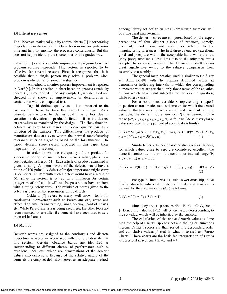 田口将质量定义为从产品发货到送达客户手中的损失。作为一种定量测量,他将质量定义为由于产品功能的变化或偏离设计所要求的期望目标值而导致的损失。田口定义的“损失函数”表示上述质量损失是变量的函数。这使得制造产品在基于损失函数的分级上即使在正常制造公差限制内也是不同的。本文提出的1型缺点评分系统从这一概念中汲取灵感。这使得即使在正常制造公差限制范围内,制造产品在基于损失函数的分级上也是不同的。