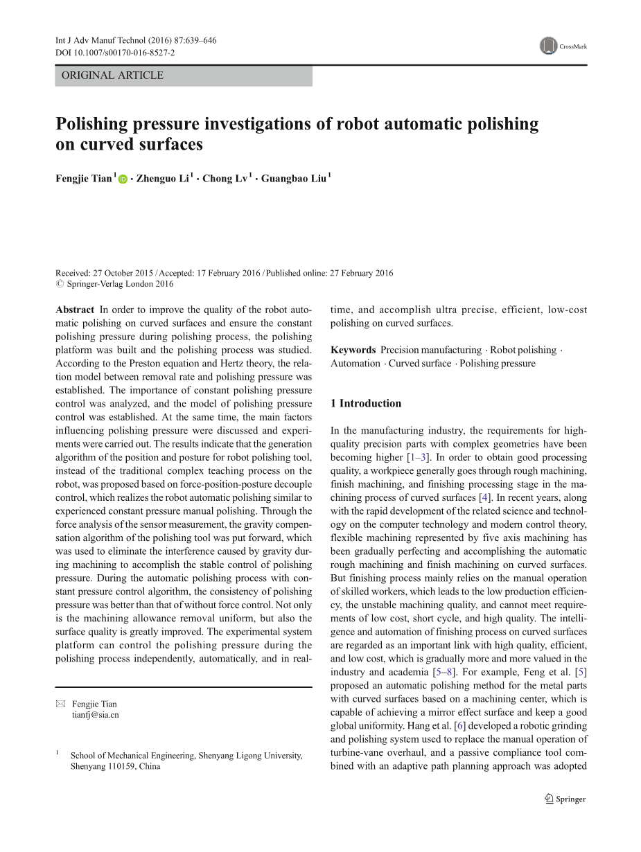 关键词:精密制造;机器人抛光;自动化;曲面;抛光力