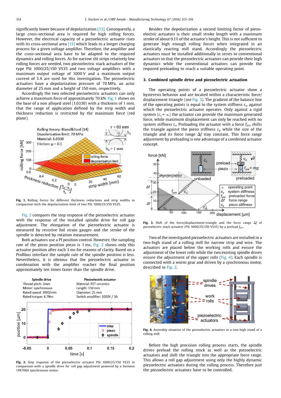 除了去极化之外,压电致动器的第二个限制因素是它们的行程长度小,最大行程约为致动器高度的0.1%。当集成在弹性反应轧机机架中时,这不足以产生足够高的轧制力。因此,压电致动器必须另外与传统致动器串联安装,使得压电致动器可以提供其高动态性,而传统致动器可以提供所需的预加载以达到合适的操作点。