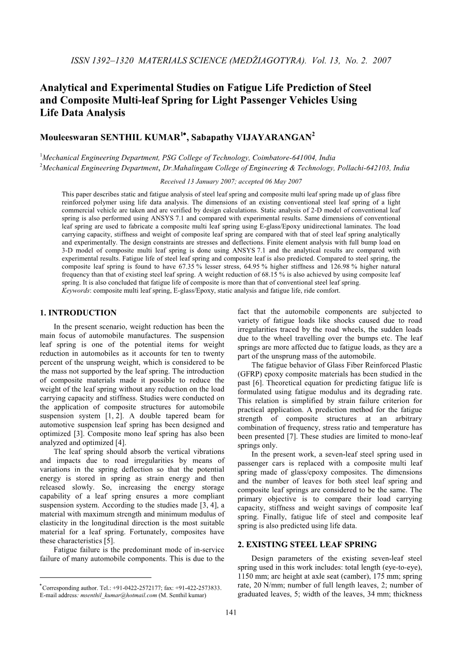 分析与实验研究钢的疲劳寿命预测并用于轻型客车的复合多叶弹簧寿命数据分析