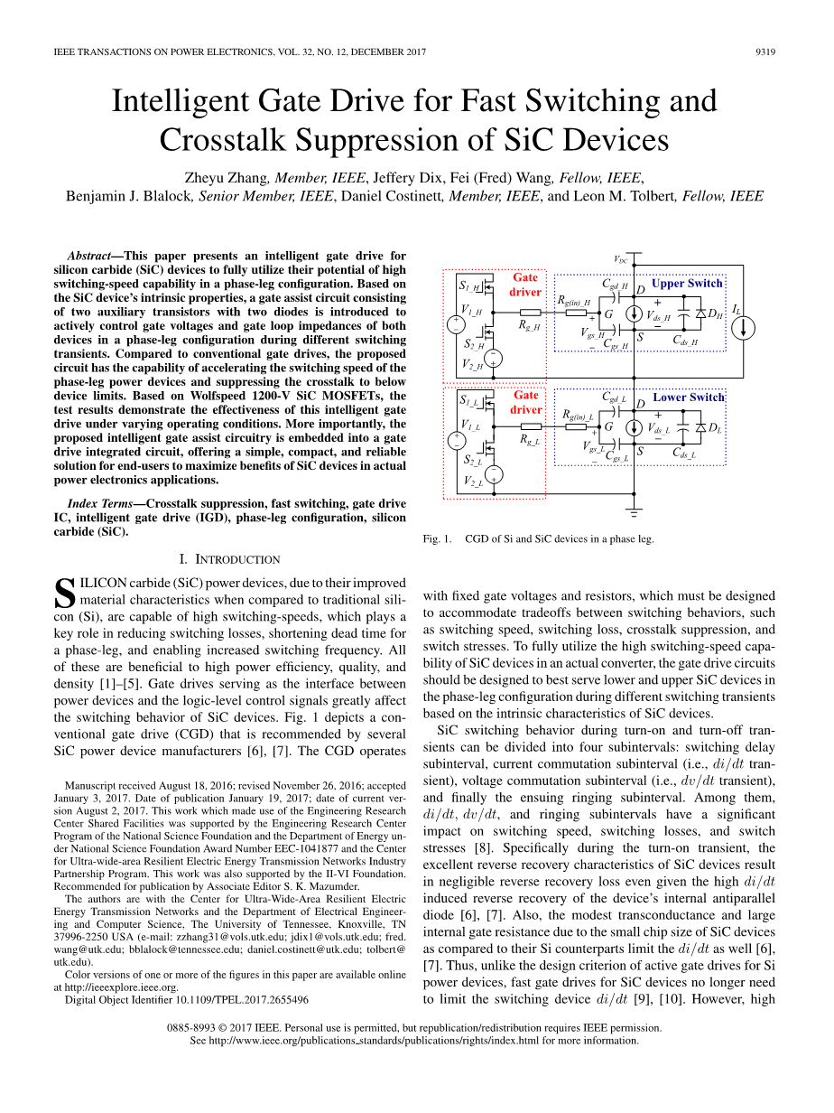 为了充分利用SiC器件的高速开关性能,一些先前的栅极驱动研究集中在开关速度改进上[12] [13],而另一些仅考虑由于快速开关引起的串扰抑制[26] - [30]。很少有作品全面研究整体开关性能改进和相应的门极驱动设计标准[31]。 此外,为了实现智能功能,总是需要辅助电路。尽管从最终用户的角度来看,它可能简单地与现有的门驱动电路集成在一起,但由于额外的组件,增加了额外的复杂性以及可靠性问题。因此,除非所有添加都嵌入到集成电路(IC)中,否则这些高级栅极驱动技术的接受和采用是有限的。