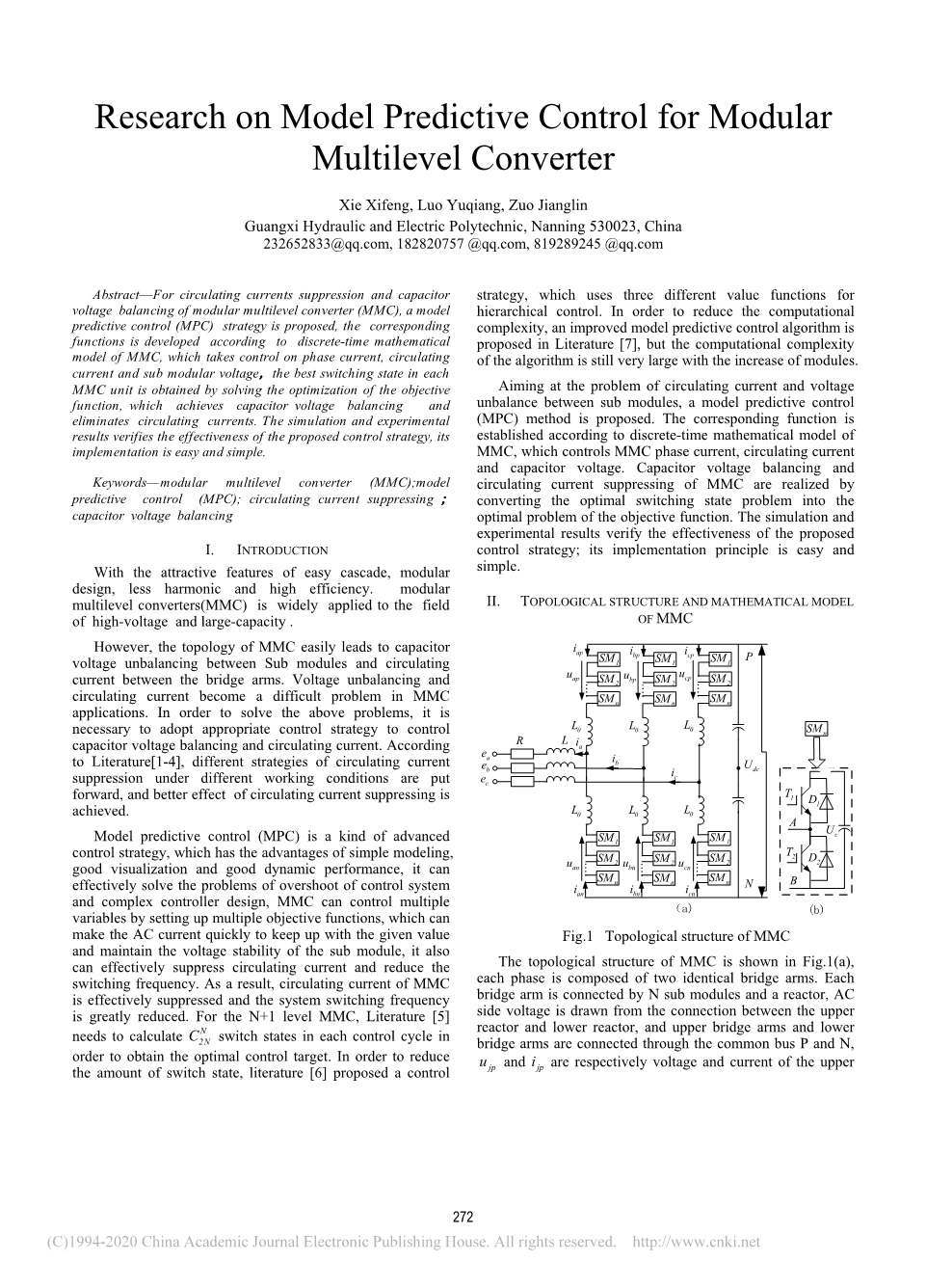 模块化多电平逆变器(MMC);模型预测控制(MPC);循环电流抑制;电容器电压平衡