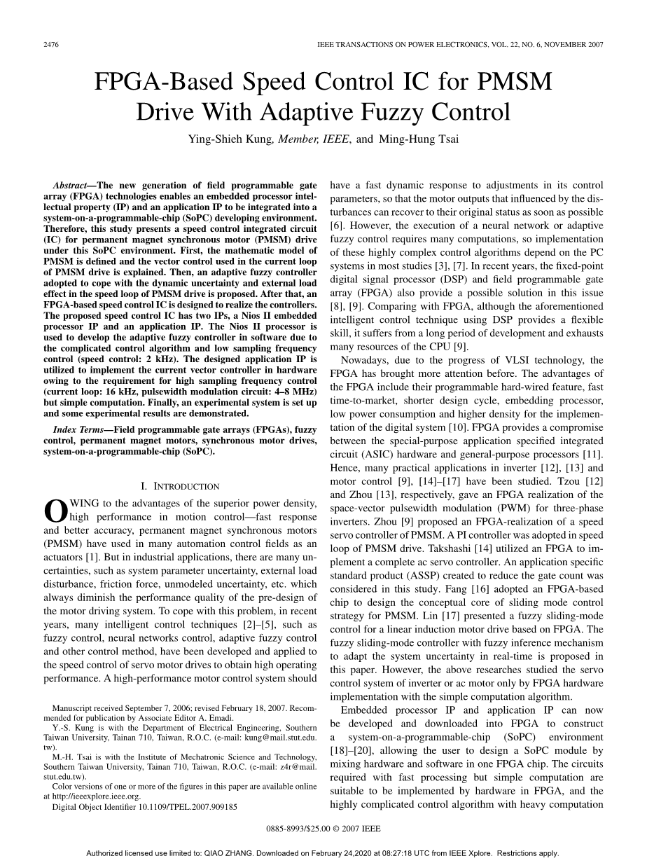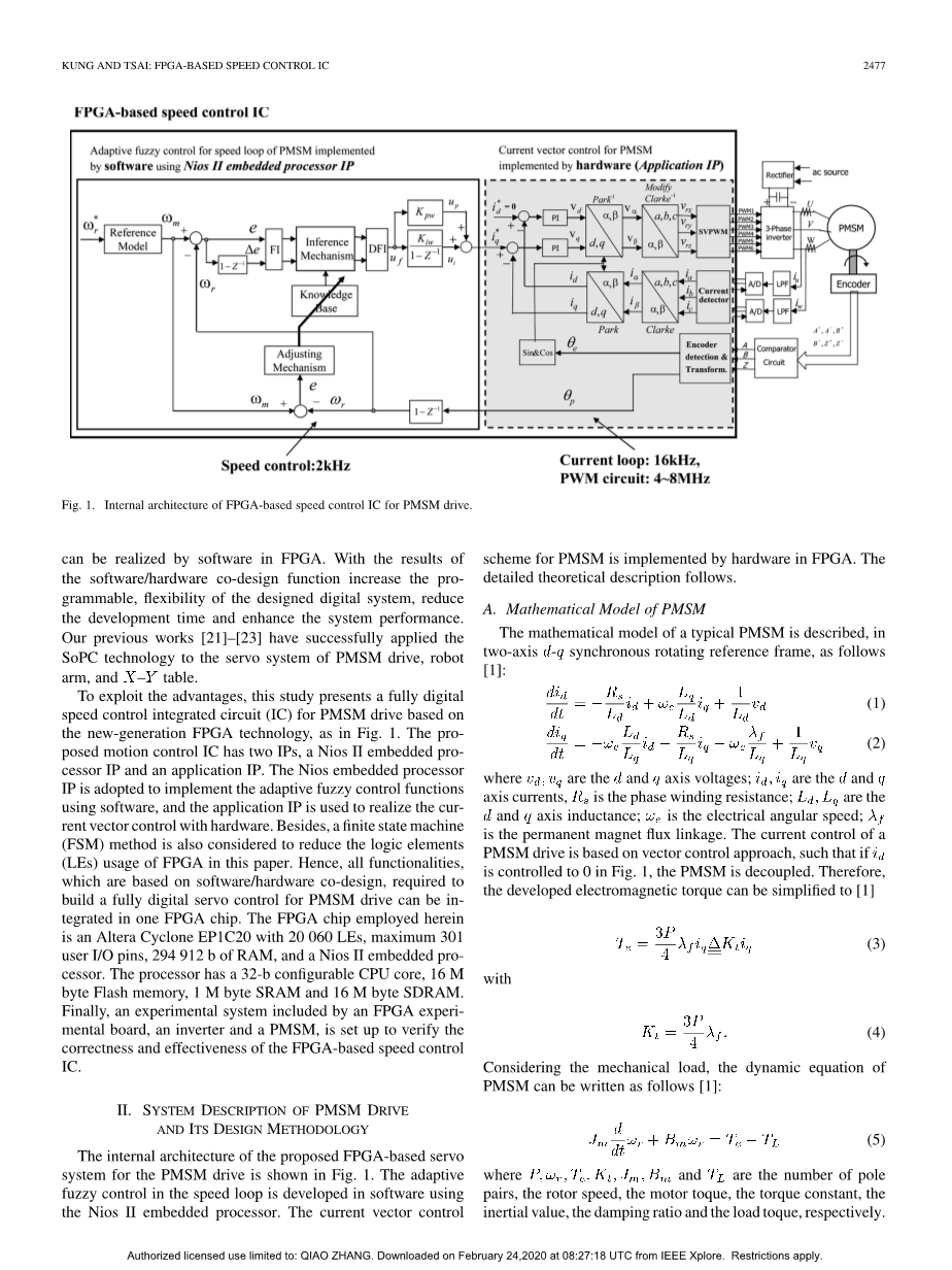 索引术语-现场可编程门阵列(FPGAs),模糊 控制,永磁电机,同步电机驱动, 可编程芯片系统(SoPC)。