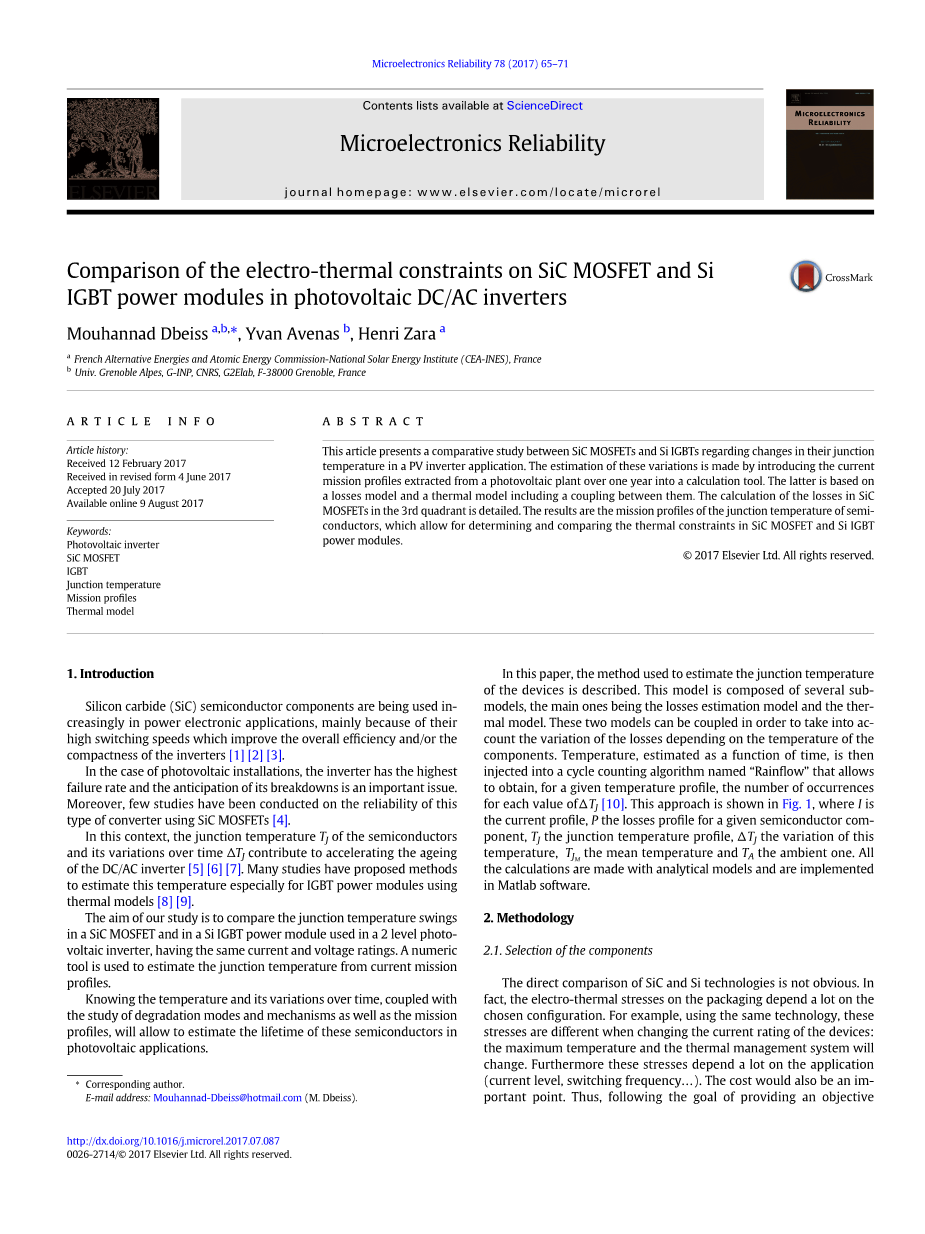 我们的研究目的是比较在相同的电流和电压额定值下,SiC MOSFET和用于二级光伏逆变器的Si IGBT功率模块中结温的变化。利用数值工具从当前任务剖面估计结温。