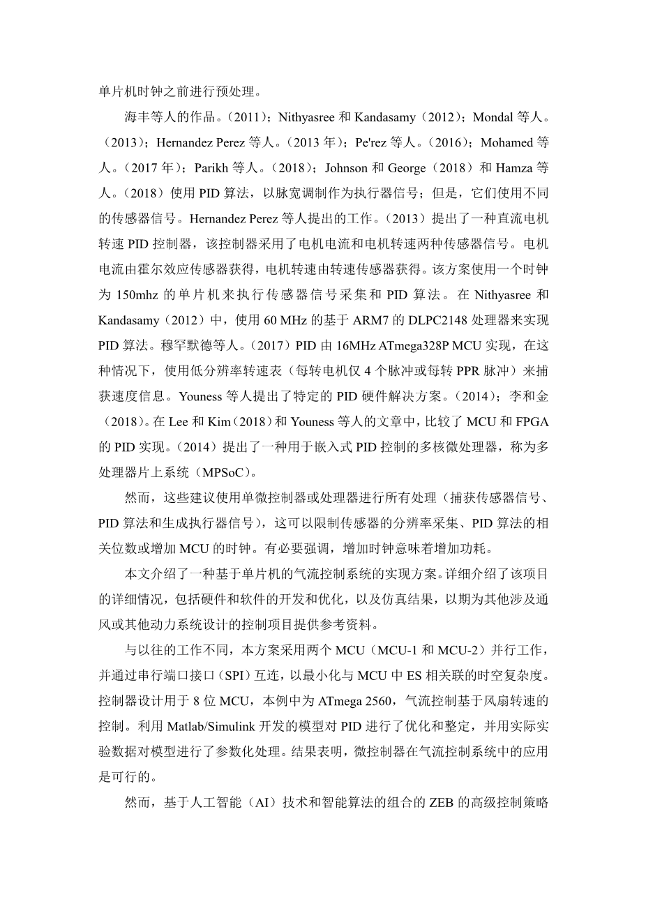 Different to previous work, this proposal employed two MCUs (MCU-1 and MCU-2), functioning in parallel and interconnected by a serial port interface (SPI), in order to minimize the spatial and temporal complexity associated with the ES in the MCU. The controller was designed for use with an 8-bit MCU, in this case an ATmega 2560, and the airflflow control was based on control of the fan speed. Optimization and tuning of the PID was performed using a model developed in Matlab/Simulink, which was parameterized with real experimental data. The results demonstrated the viability of using microcontrollers in airflflow control systems.