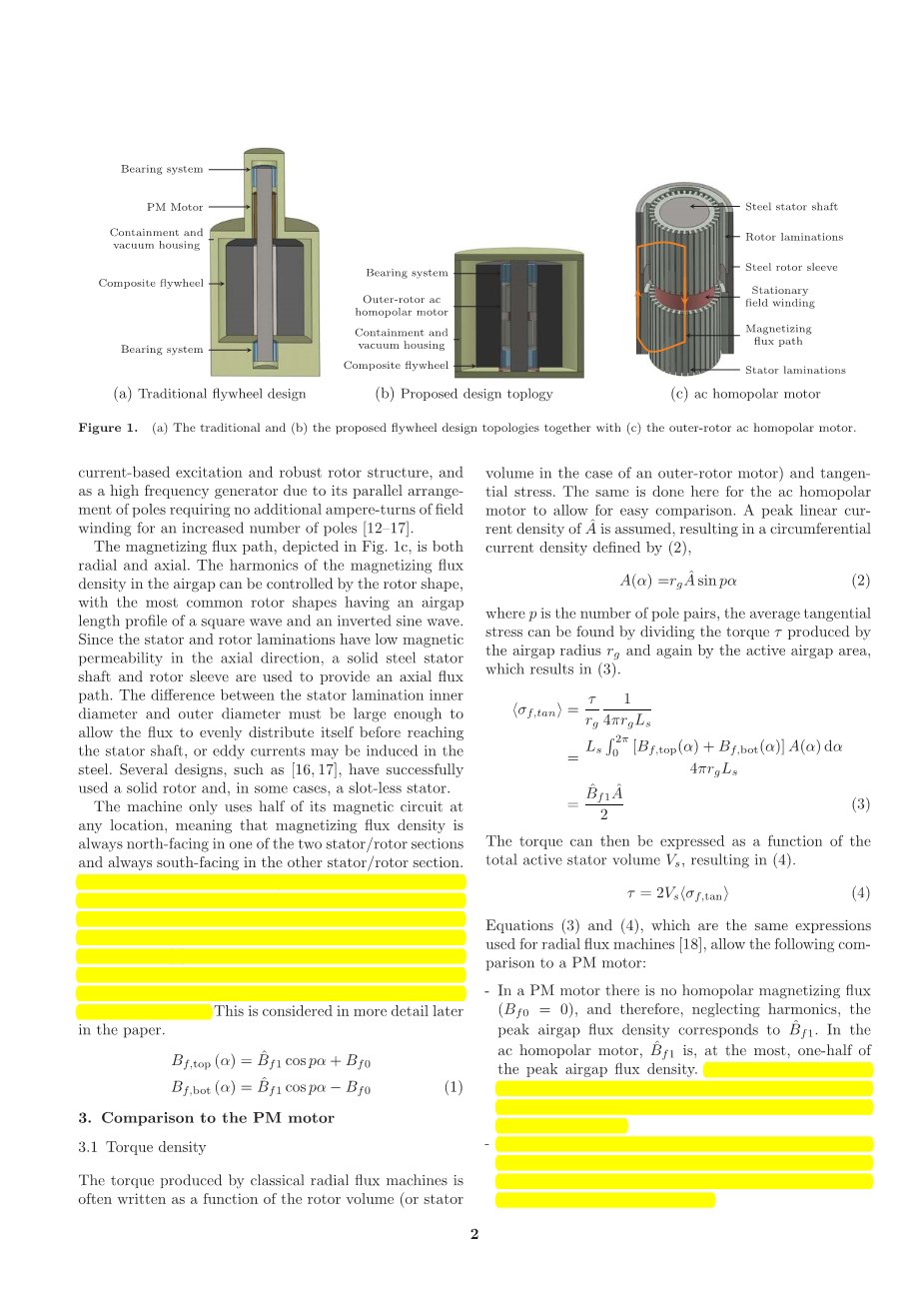 -在一个永磁电机中,(4)与有效的长度成线性比例,因为只有和长度有依赖关系。在交流单极电机中,增加有效长度而保持其他的参数不变会增加通过气隙的磁通,这意味着定子轴和转子套筒的横截面积也会增加。