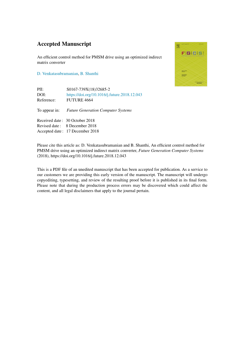 一种使用优化间接矩阵转换器的PMSM驱动的有效控制方法