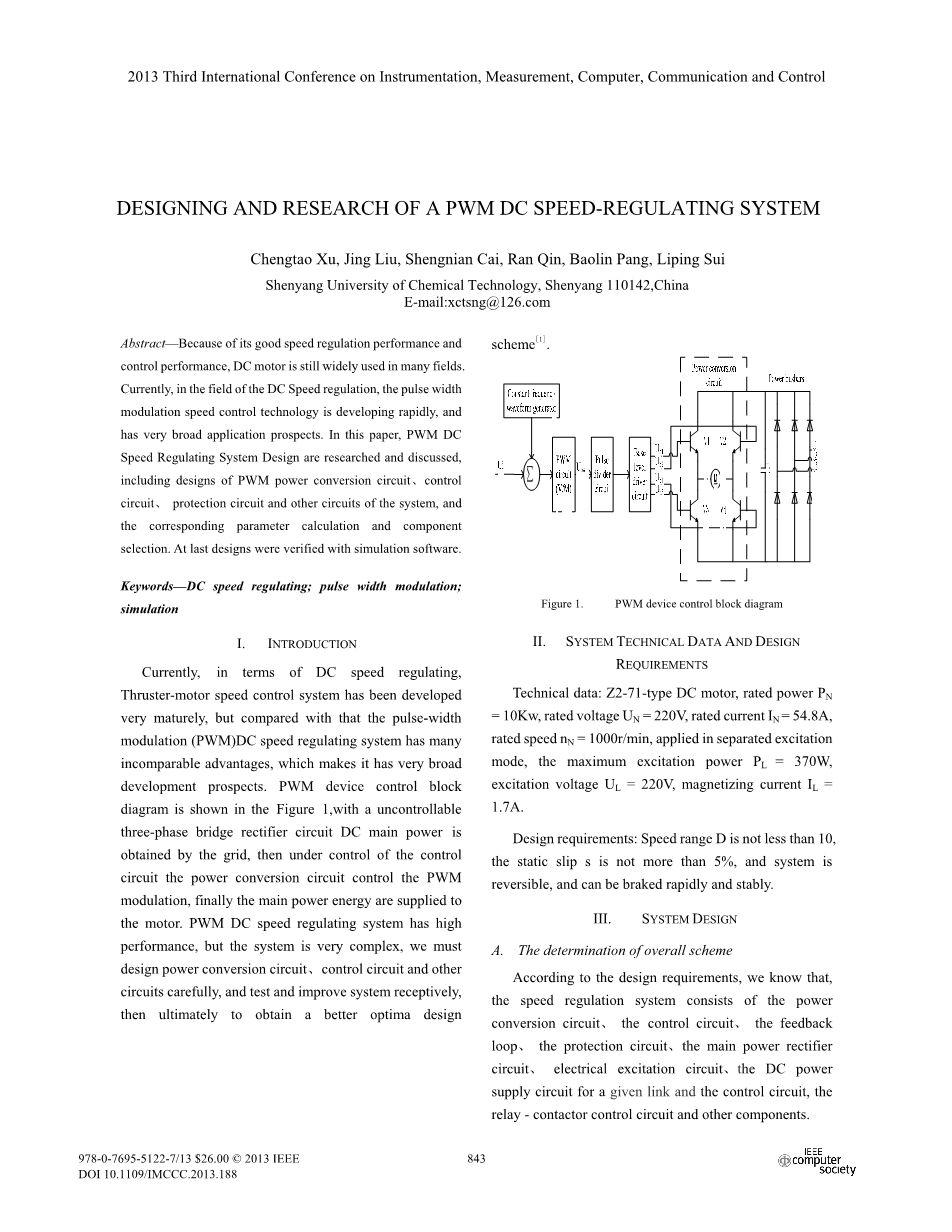 由于它的良好的调速性能和控制性能,直流电机在许多领域仍有广泛的应用。目前,在直流调速领域,脉冲宽度调制调速技术发展迅速。具有非常广泛的应用前景。在本文中,对PWM DC调速系统的设计进行了研究和讨论,包括PWM电源转换电路的设计、电路、保护电路和其他电路的系统,和相应的参数计算和组成、选择、最后的设计软件。