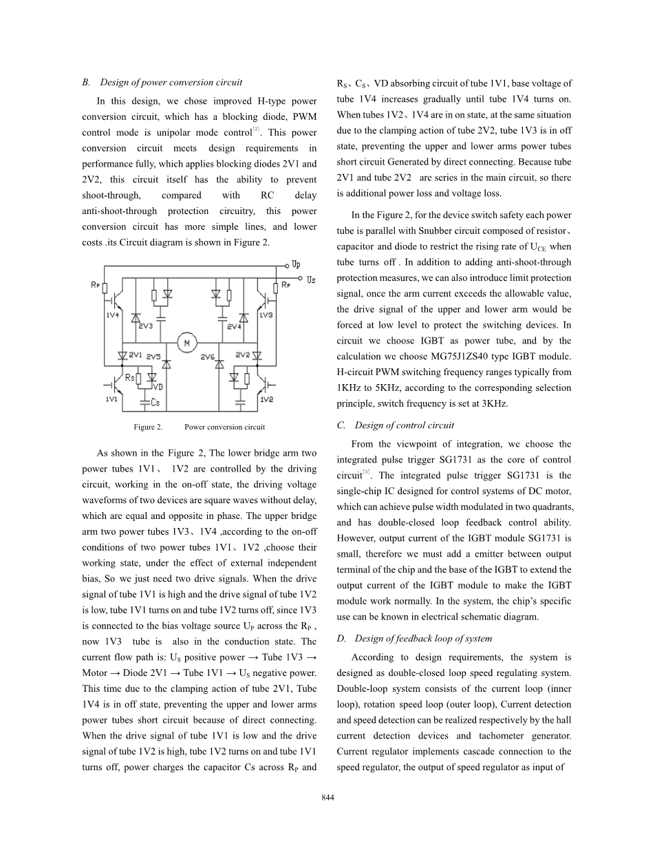在这个设计中,我们选择了改进的h型功率转换电路,它有一个闭锁二极管,PWM控制模式是单极模式控制。这个功率转换电路完全满足性能设计要求,它适用于阻塞二极管2v1和2v2,这个电路本身有能力防止射穿,与RC延迟anti-shoot-through保护电路相比,这种功率转换电路更简单的线条,更低的成本牵引,电路图如图2所示。