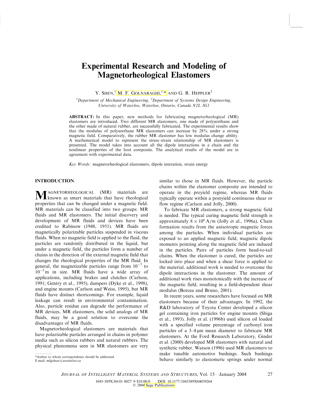 Y. SHEN1,M. F. GOLNARAGHI1和G. R. HEPPLER2