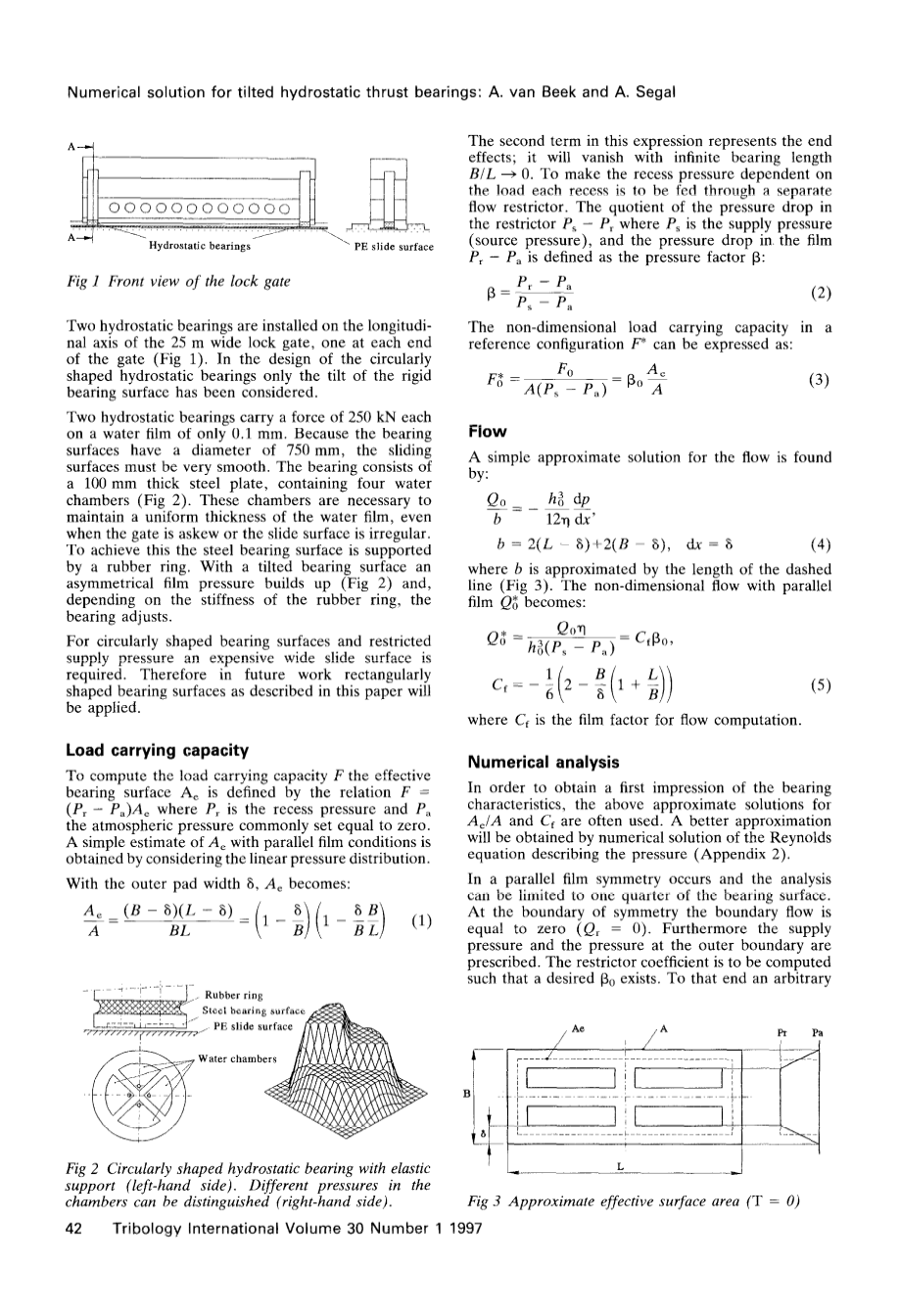 of the gate (Fig 1). In the design of the circularly shaped hydro-static bearings only the tilt of the rigid bearing surface has been considered.