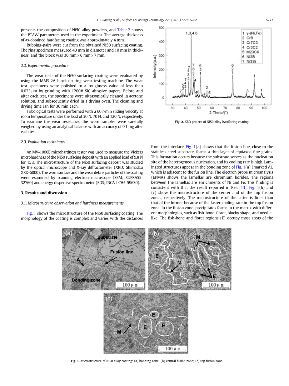 等离子体转移焊后熔覆的镍基表面的显微组织和磨损性能
